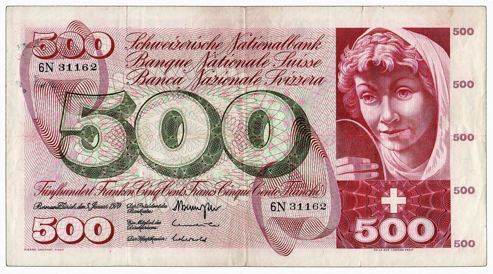Cartamoneta - SVIZZERA - 500 Fr serie 6N31162 - Piega centrale.