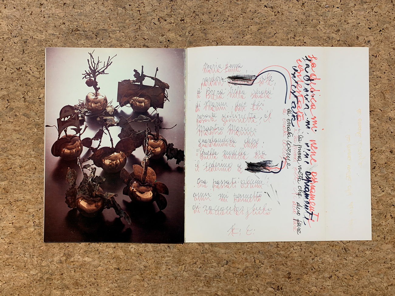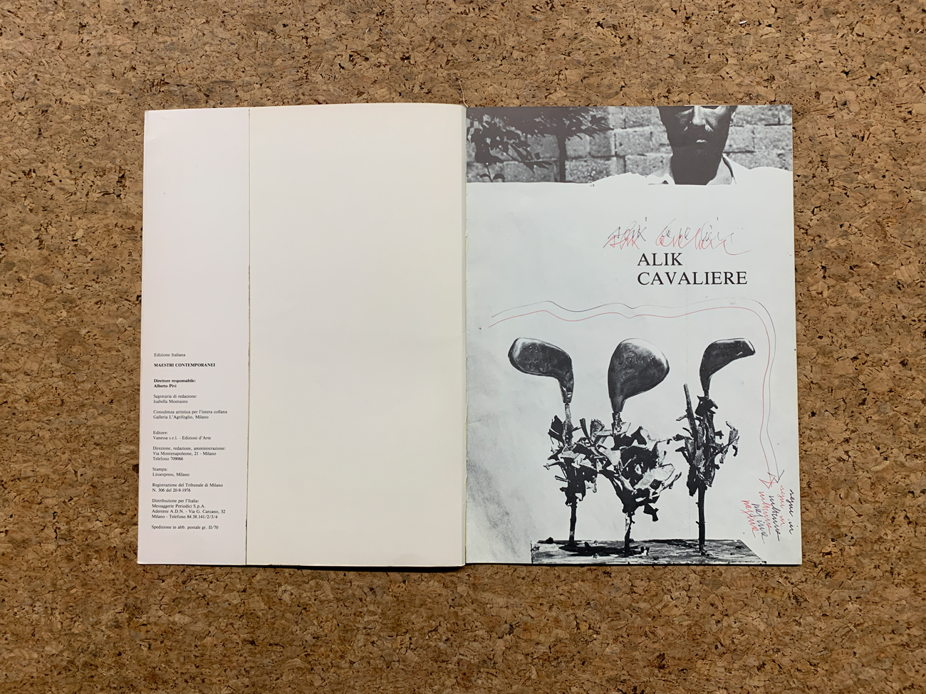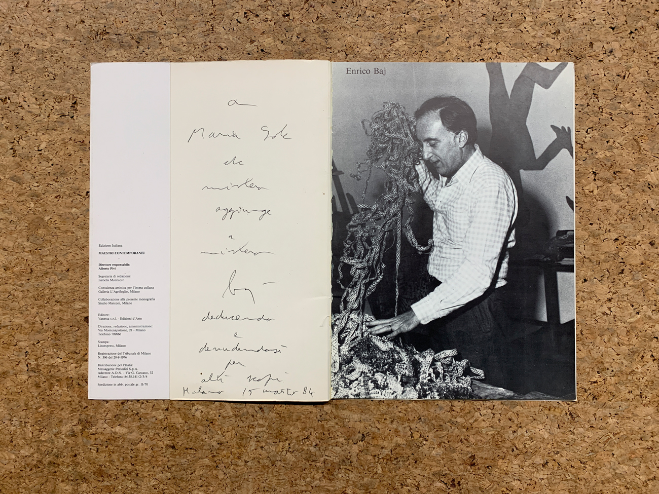 Reca all'interno, alla terza e alla penultima pagina, una lunga e ironica dedica dell'Artista realizzata in biro rossa e nera
