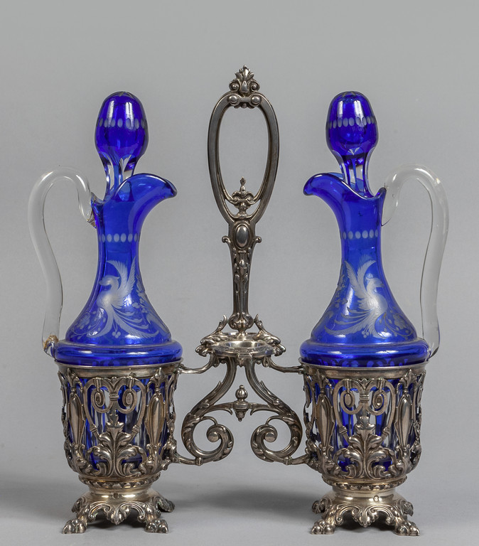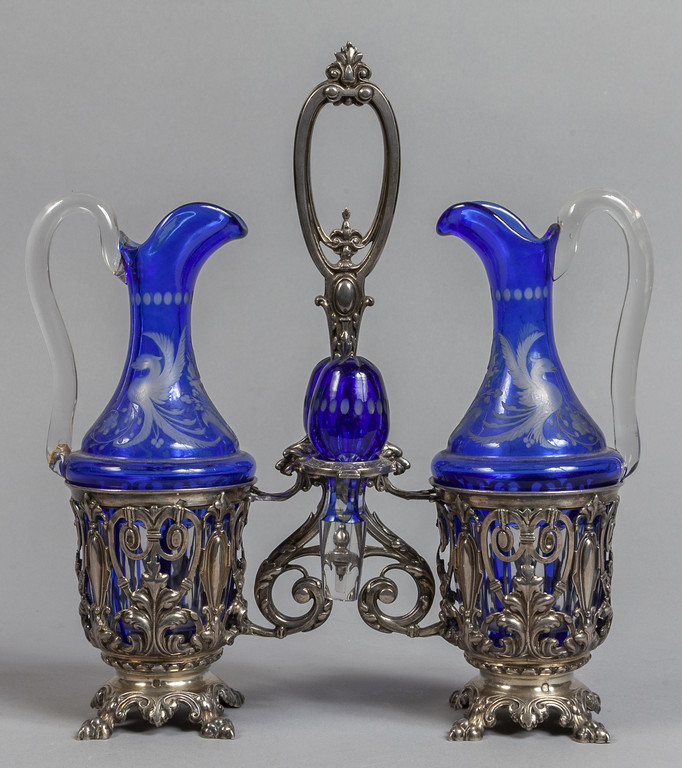 Oliera Luigi Filippo in argento primo titolo argentiere Boulenger ampolla in cristallo blu molato Francia metà sec.XIX