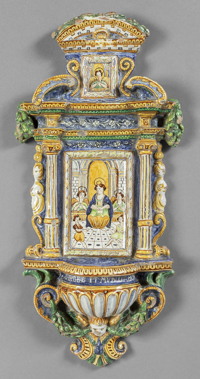 Acquasantiera in ceramica policroma Italia Centrale sec.XIX