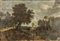 'Paesaggio con figure e pescatori' olio f.to in b.a sn.