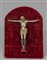 Cristo crocefisso scultura in argento ed argento dorato montata su pannello in velluto rosso sec. XVII