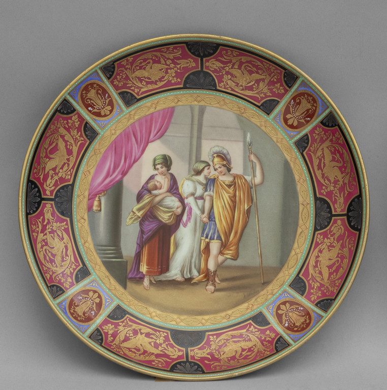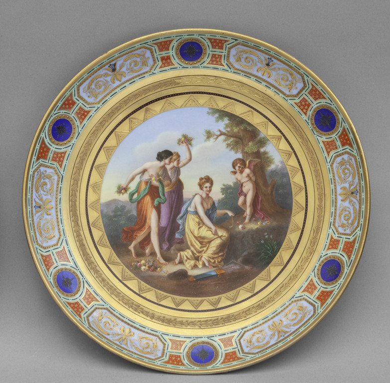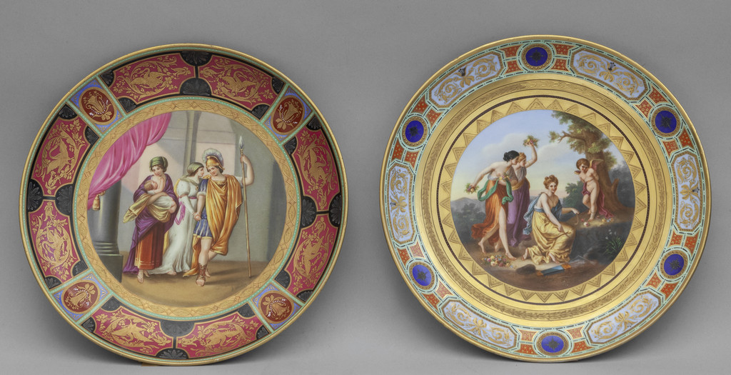 Coppia di piatti in porcellana policroma nel cavedio scene classiche Vienna sec.XIX