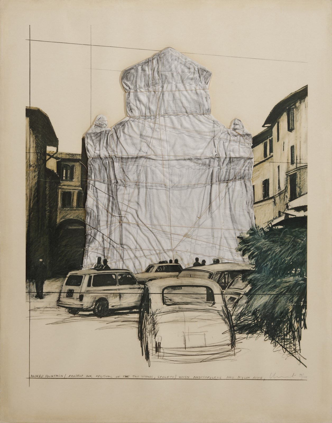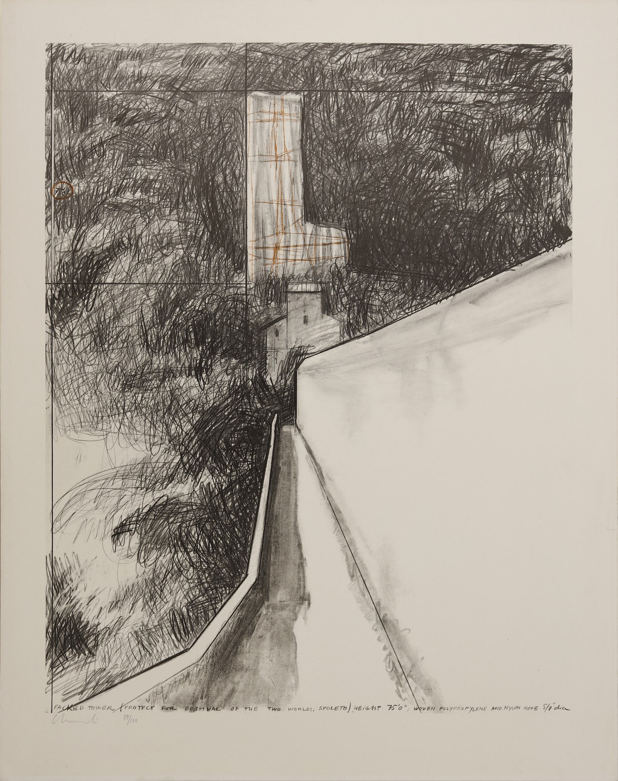 CHRISTO (1935 - 2020) - Packed fountain and packed tower, Spoleto.