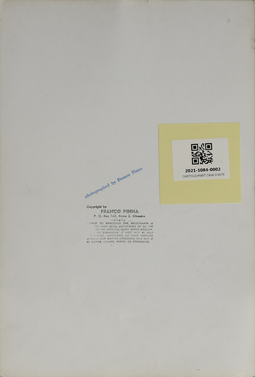PINNA FRANCO (1925 - 1978) Senza titolo. Foto in bianco e nero. Cm 24,00 x 36,00. Al retro credito dell'artista. Difetti. Provenienza: Casa Bernardino Zapponi, uno degli storici sceneggiatori di Federico Fellini. Franco Pinna è il fotografo che ha seguito il Maestro in tanti film e fatto la storia anche dell’immaginario felliniano. La foto presentata proviene però dal periodo della sua collaborazione con il grande antropologo Ernesto De Martino, il padre della moderna antropologia, con il quale lavorò a lungo verso la metà degli anni 50 girando l’Italia magica e misteriosa come il Salento, La Lucania, documentando e raccontando fenomeni come ad esempio il tarantismo.