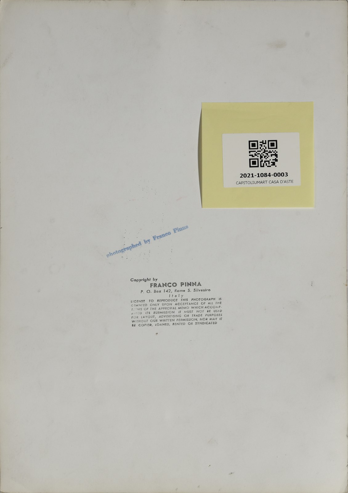 PINNA FRANCO (1925 - 1978) Senza titolo. Foto in bianco e nero. Cm 24,00 x 36,00. Al retro credito dell'artista. Difetti. Provenienza: Casa Bernardino Zapponi, uno degli storici sceneggiatori di Federico Fellini. Franco Pinna è il fotografo che ha seguito il Maestro in tanti film e fatto la storia anche dell’immaginario felliniano. La foto presentata proviene però dal periodo della sua collaborazione con il grande antropologo Ernesto De Martino, il padre della moderna antropologia, con il quale lavorò a lungo verso la metà degli anni 50 girando l’Italia magica e misteriosa come il Salento, La Lucania, documentando e raccontando fenomeni come ad esempio il tarantismo.