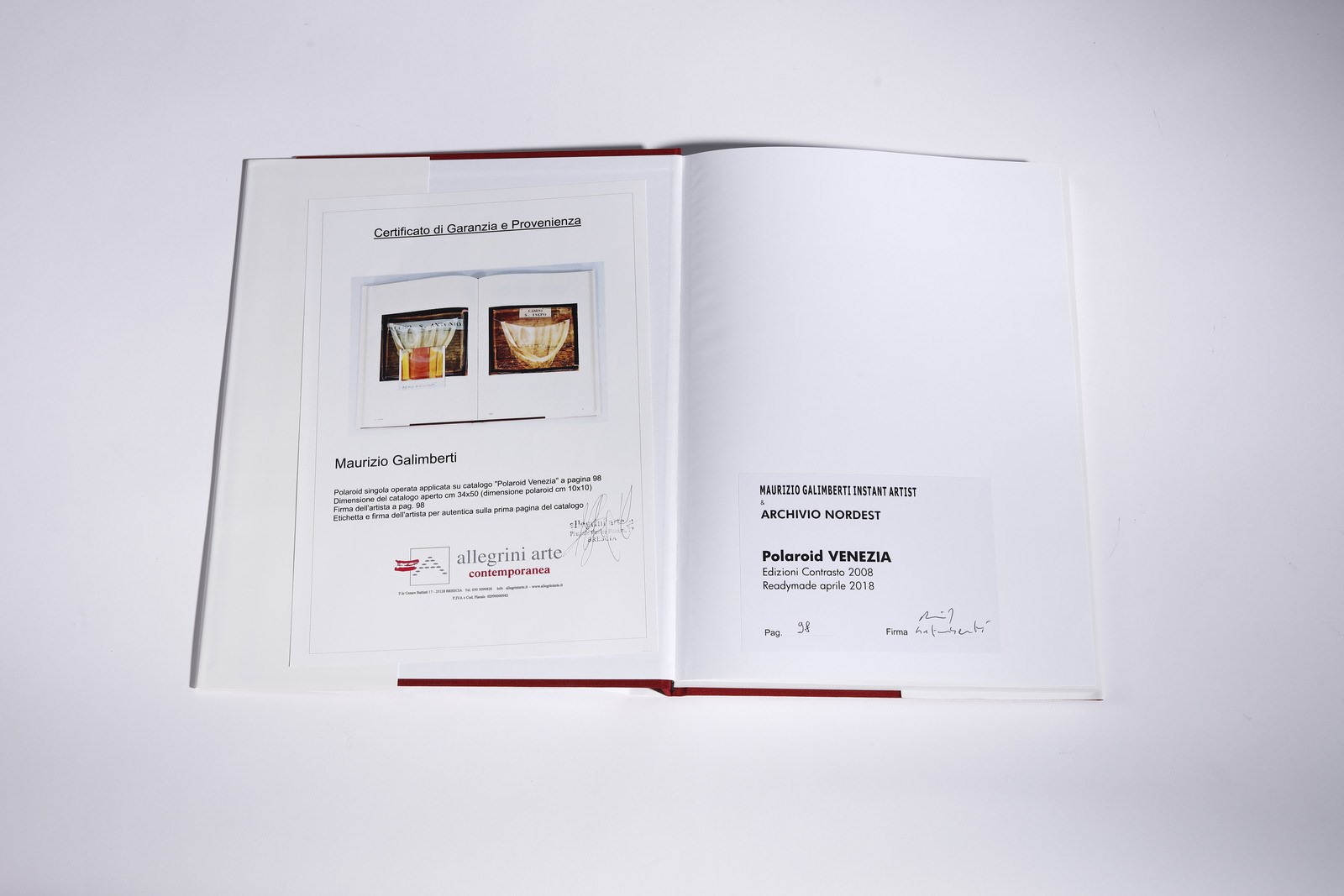GALIMBERTI MAURIZIO (n. 1956) ReadymadePolaroid Venezia. Polaroid e intervento su catalogo. Cm 25,00 x 34,00. Applicata su catalogo a pag.98. Edizioni contrasto 2008. Certificato di provenienza Allegrini Arte, Brescia. Firma all'interno del volume.