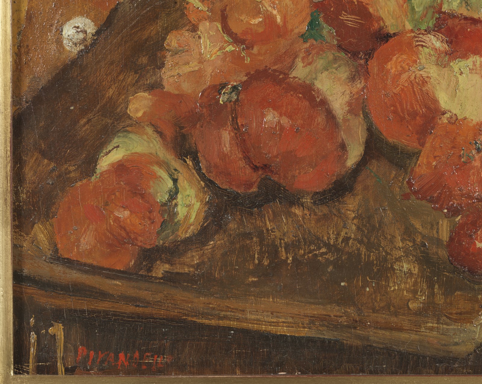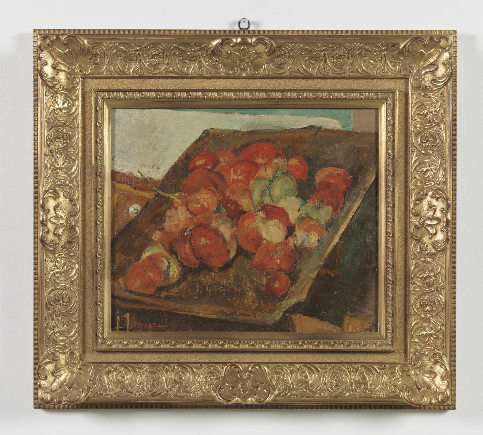 PIRANDELLO FAUSTO (1899 - 1975) Natura morta. Olio su tavola. Cm 35,20 x 29,70. Firma in basso a sinistra. Autentica di Pierluigi Pirandello su fotografia. Provenienza: Farsetti Arte (Novembre 2013); Collezione privata, Agrigento. Cornice presente