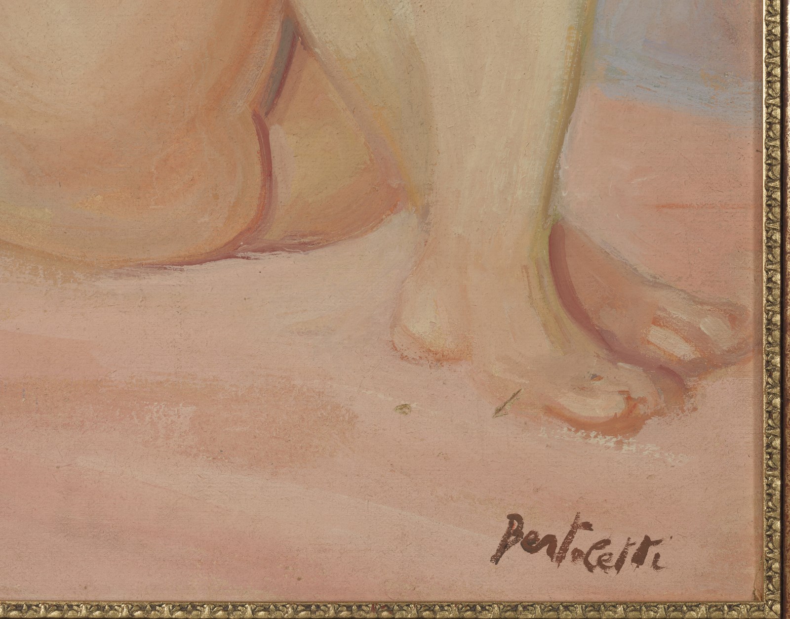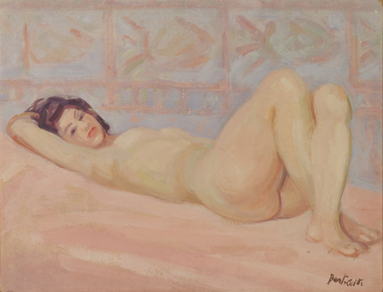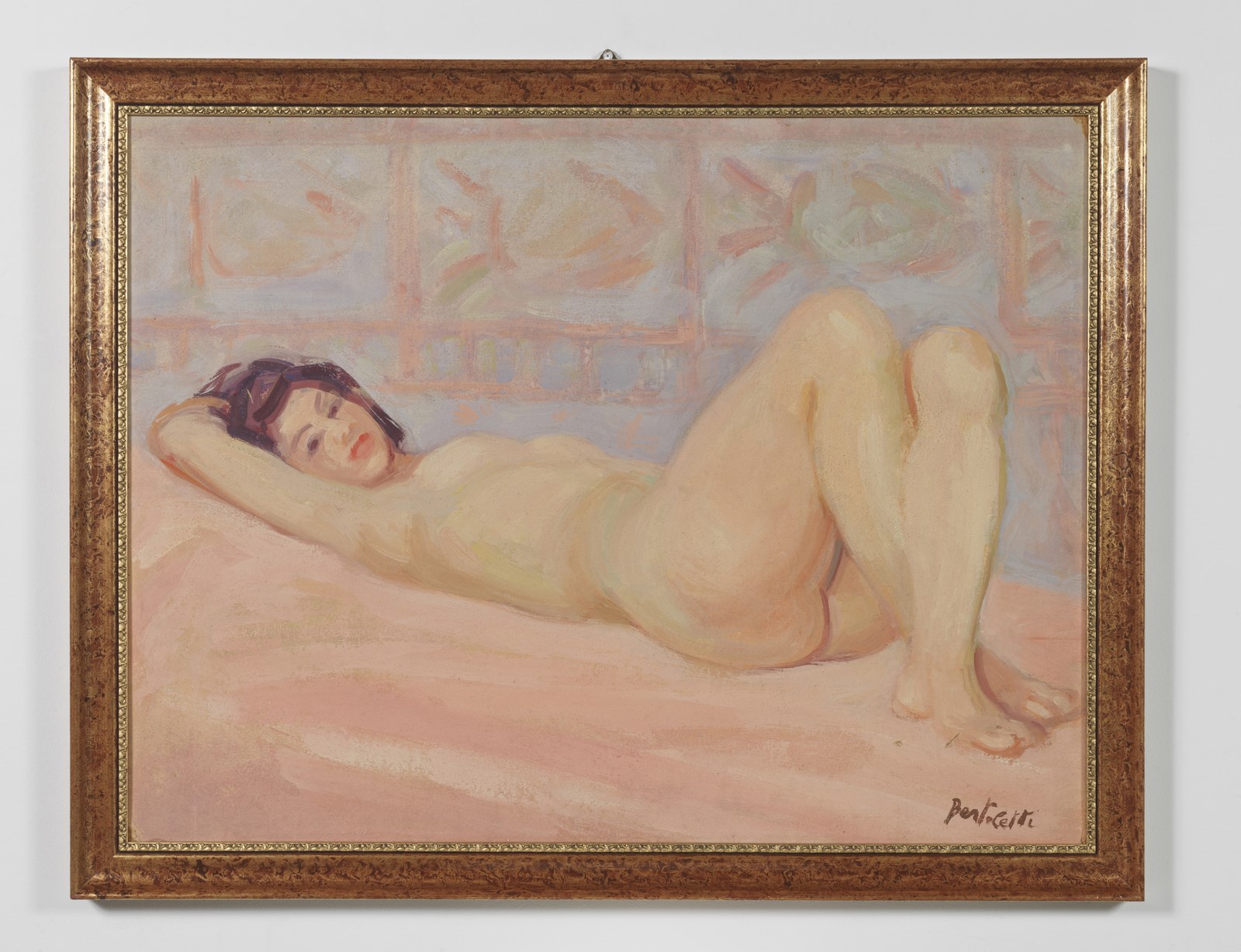 BERTOLETTI NINO (1889 - 1991) Nudo. Tecnica mista su cartone. Cm 100,00 x 75,00. Firma in basso a destra. Al retro dedica e firma. Difetti. Cornice presente
