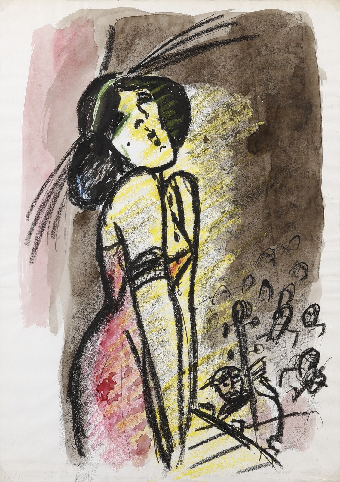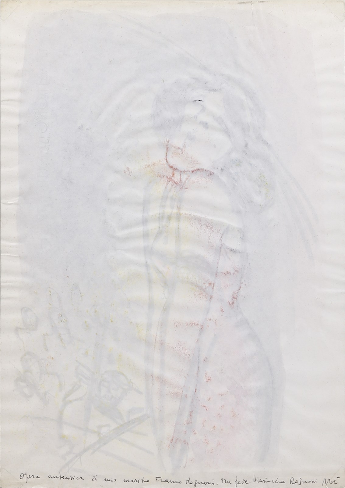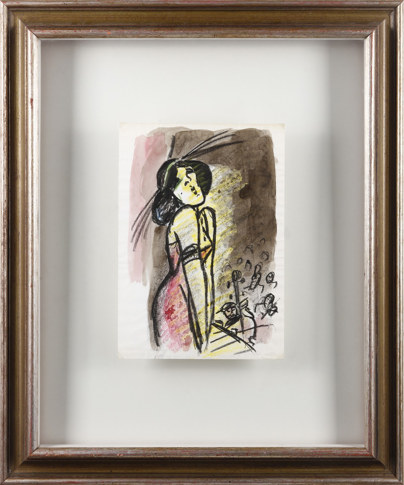 ROGNONI FRANCO (1913 - 1999) La cantante. Tecnica mista su carta. Cm 20,00 x 30,00. Al retro dichiarazione di autenticità di Mariuccia Rognoni Noè. Cornice presente