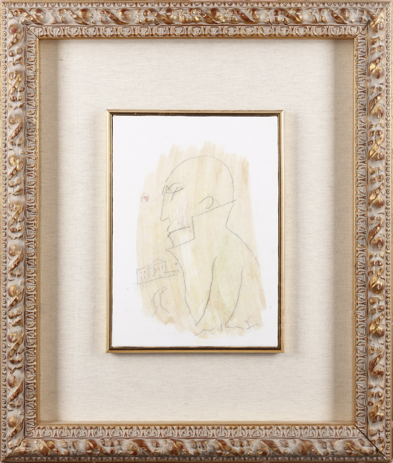 ROGNONI FRANCO (1913 - 1999) Profilo d'uomo. Tecnica mista su carta intelata. Cm 22,00 x 30,00. Firma in basso a destra. Autentica dell'artista su fotografia. Cornice presente