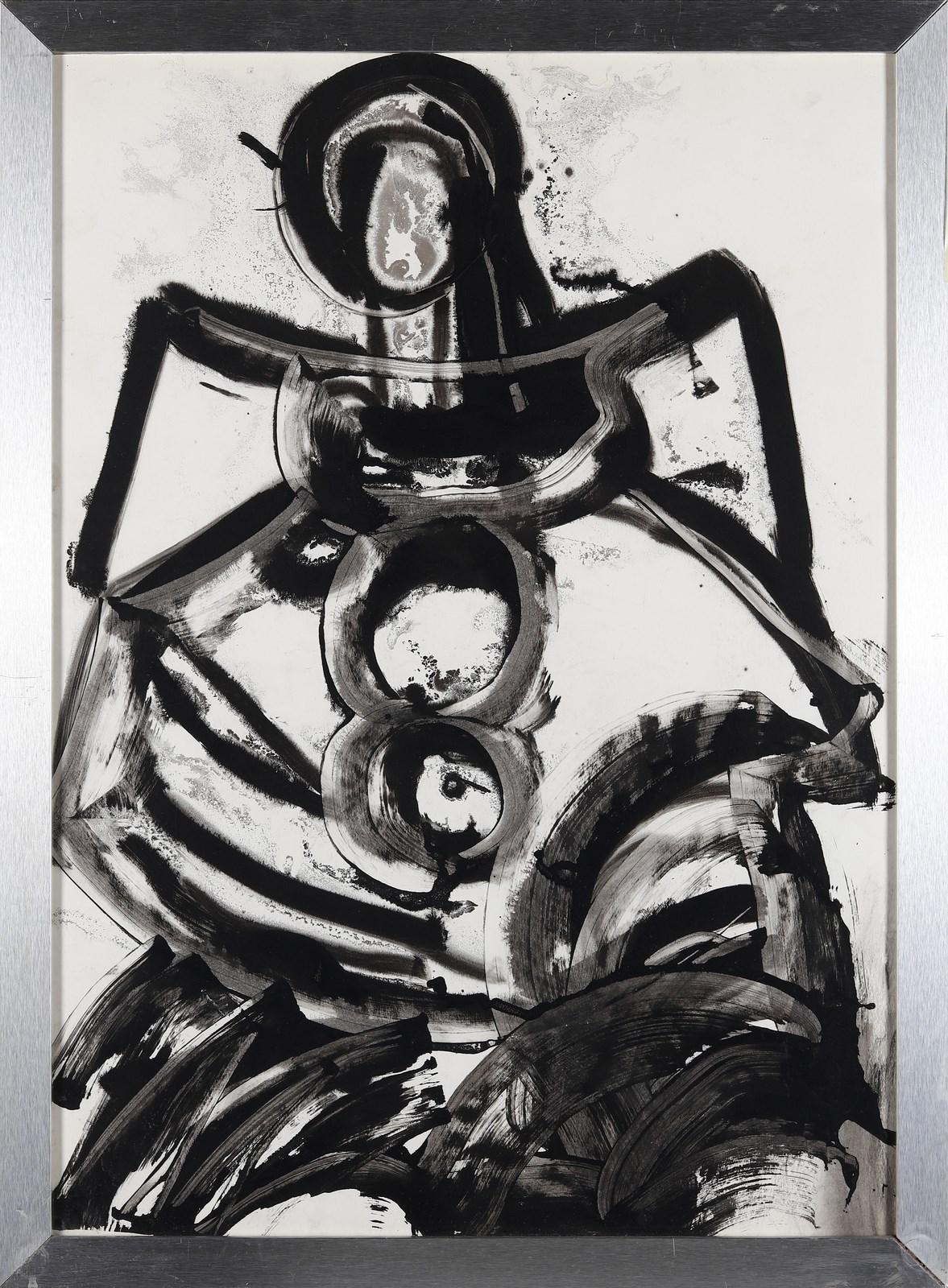 MASTROIANNI UMBERTO (1910 - 1998) Senza titolo. Inchiostro su carta. Cm 50,00 x 70,00. Firma al retro. Cornice presente