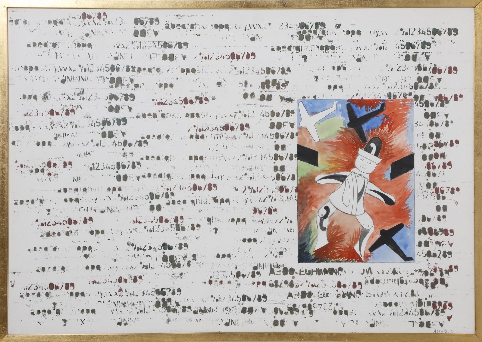 ANGELI FRANCO (1935 - 1988) Senza titolo. Tecnica mista su carta. Cm 103,00 x 73,00. Firma in basso a destra. Opera archiviata presso l'Archivio Franco Angeli, Roma, come da documentazione fotografica allegata all'opera riportante il relativo numero d'inventario. Anni 80'. Cornice presente