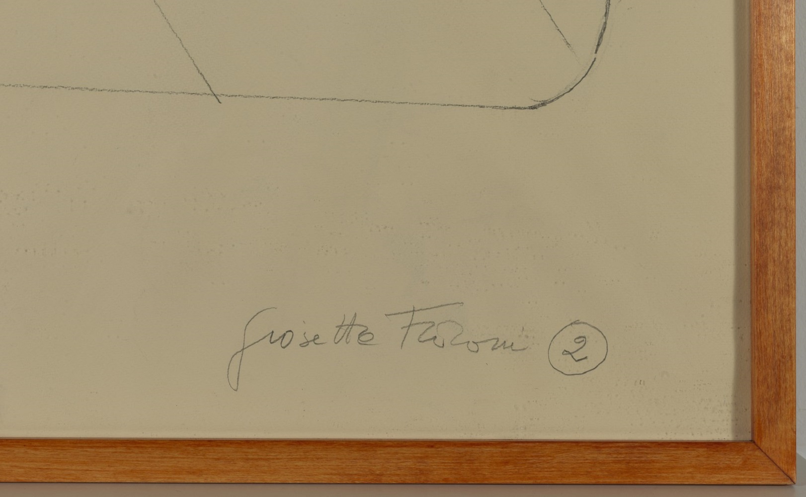 FIORONI GIOSETTA (n. 1932) Cappello 69. 1969. Tecnica mista su carta. Cm 70,00 x 100,00. Titolo, firma e anno in basso. Autentica dell'artista su fotografia con timbro dell'artista. Cornice presente