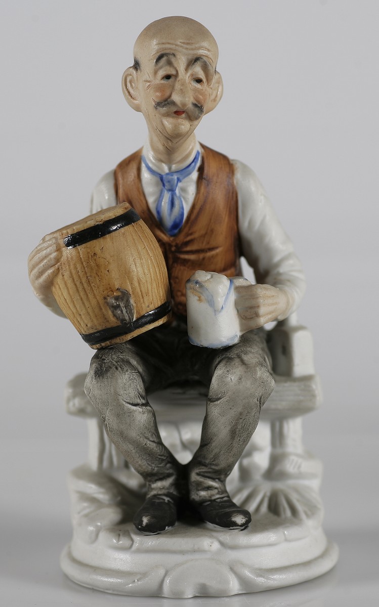 MANIFATTURA DEL XX SECOLO Signore con barile e boccale. Ceramica Capo di...