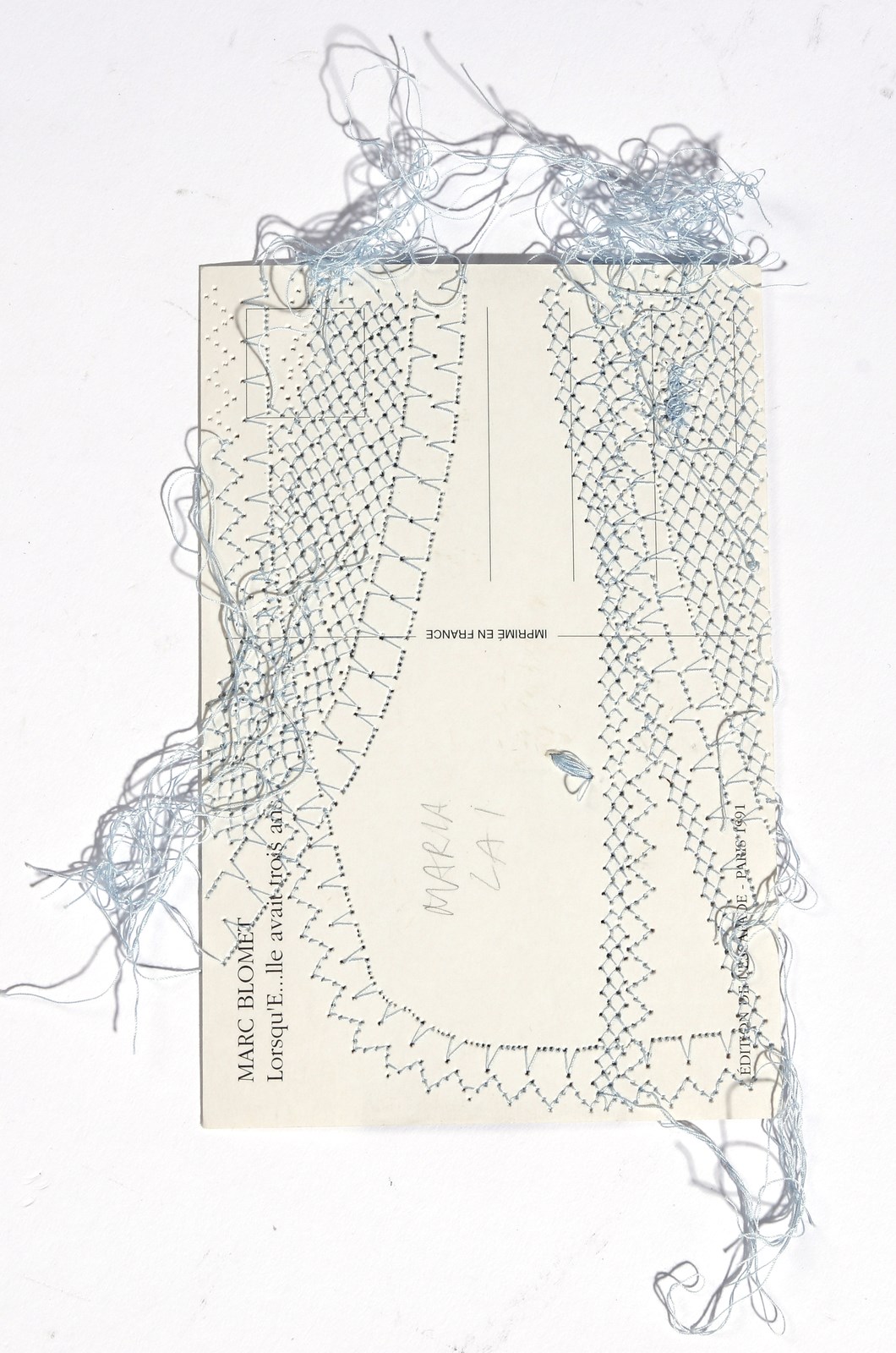 LAI MARIA (1919 - 2013) Senza titolo. Intervento su cartolina. Cm 10,00 x 15,50. Firma al retro a matita. Opera in corso di archiviazione presso l'Archivio Maria Lai, Lanusei.