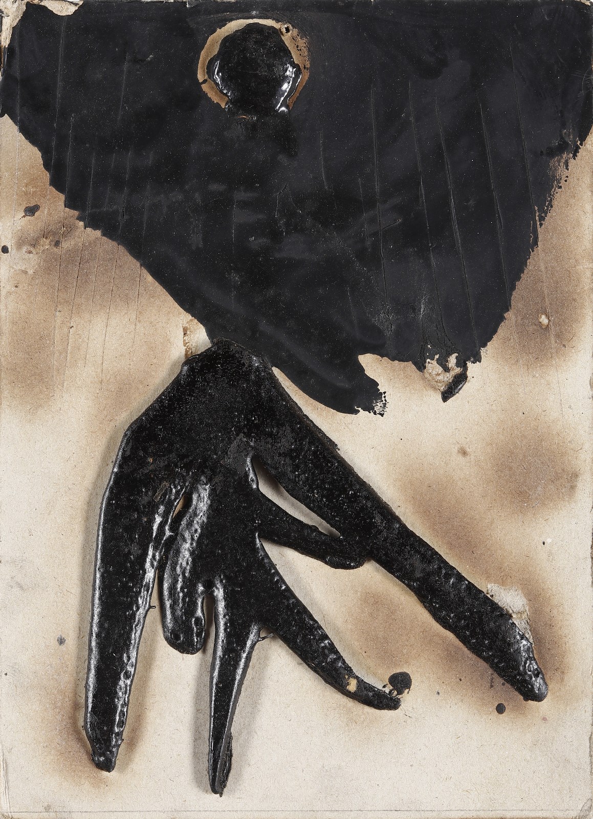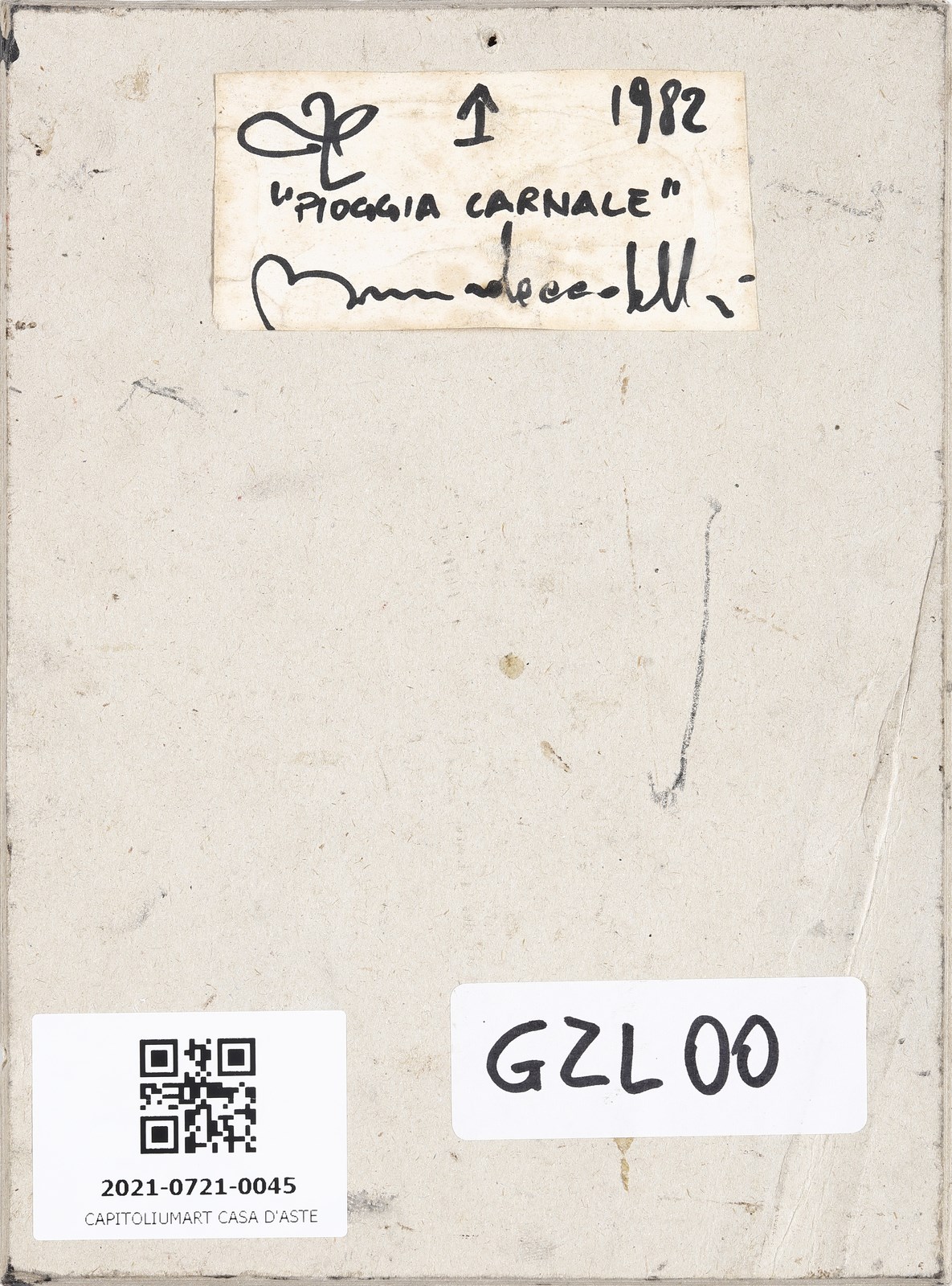 CECCOBELLI BRUNO (n. 1952) Pioggia carnale. 1982. Tecnica mista su cartone. Cm 16,50 x 22,00. Al retro titolo, firma e anno. Autentica dell'artista su fotografia riportante il relativo numero d'inventario. Difetti.