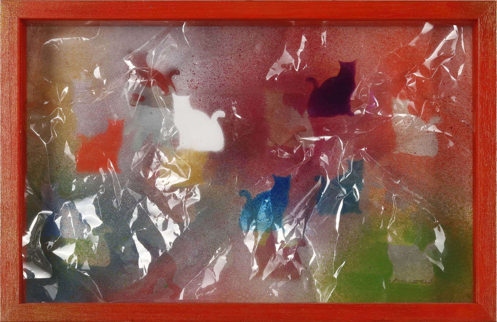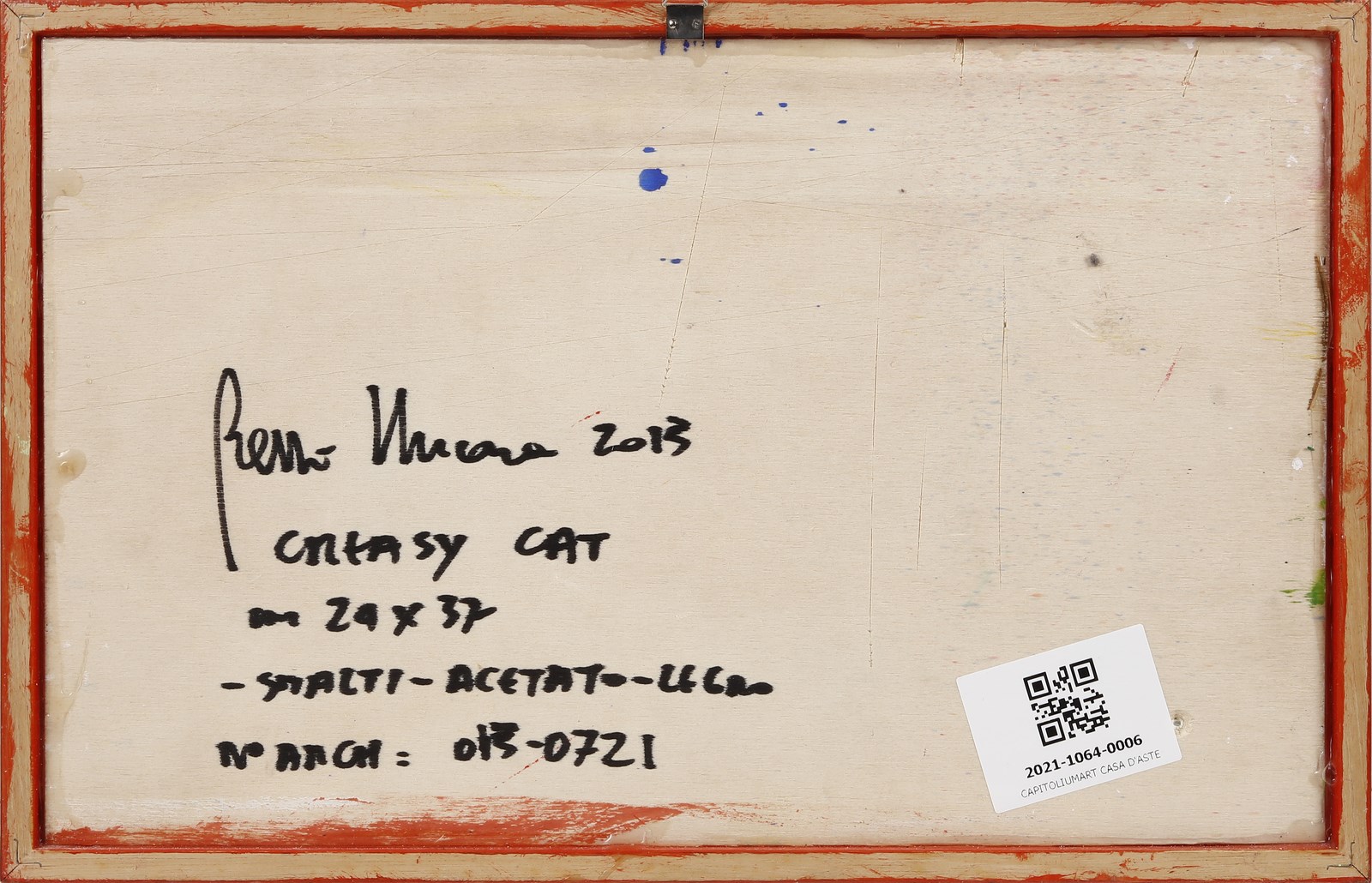 NUCARA RENZO (n. 1955) Creasy cat. 2013. Tecnica mista e collage su tavola. Cm 37,00 x 24,00. Al retro firma e anno. Autentica dell'artista su fotografia riportante il relativo numero d'inventario. Cornice presente