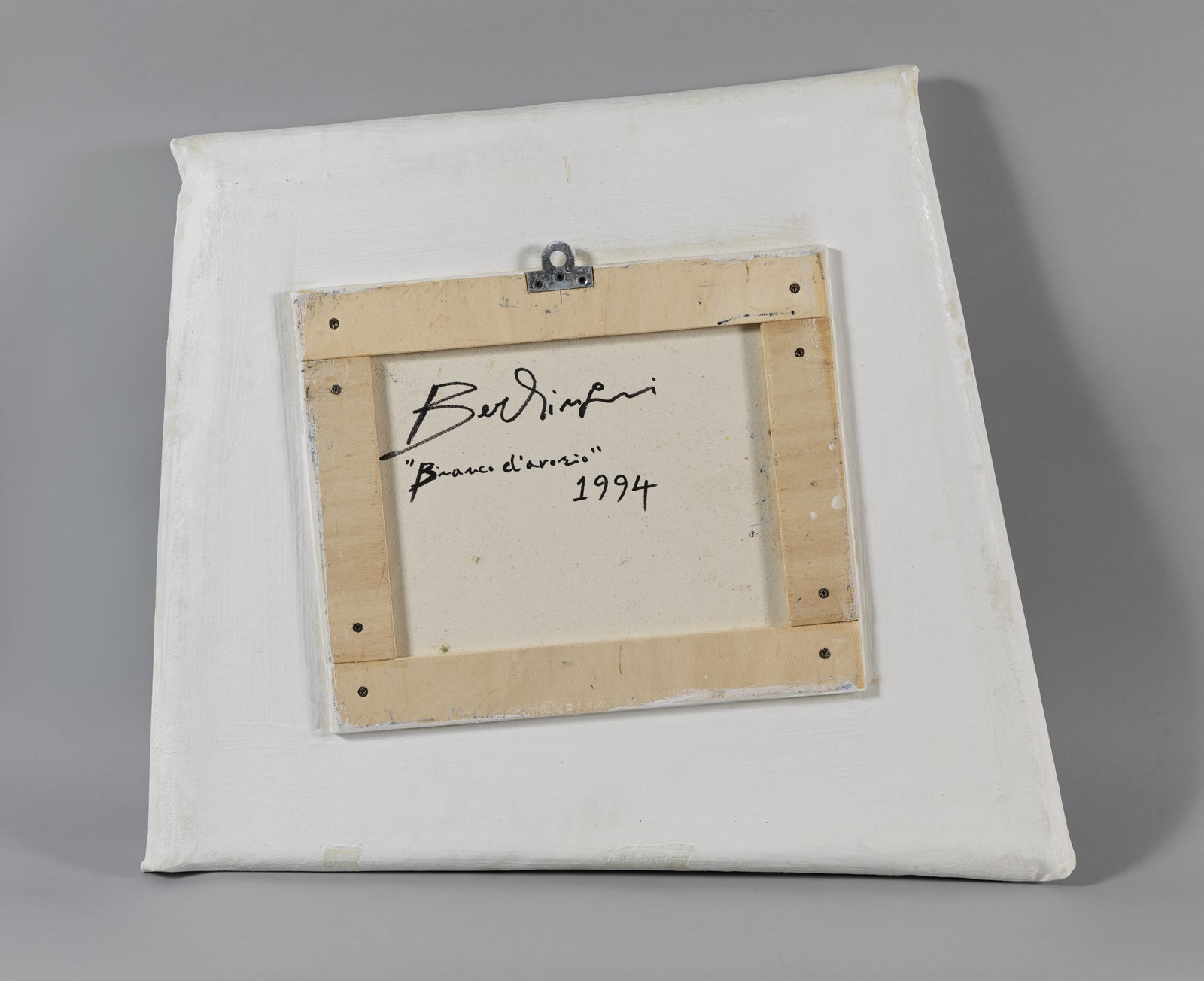 BERLINGERI CESARE (n. 1948) Bianco d'avorio. 1994. Tecnica mista su tela. Cm 56,00 x 70,00. Al retro titolo, firma e anno. Opera archiviata presso l'Archivio Cesare Berlingeri come da documentazione fotografica allegata all'opera riportante il relativo numero d'inventario.Difetti.