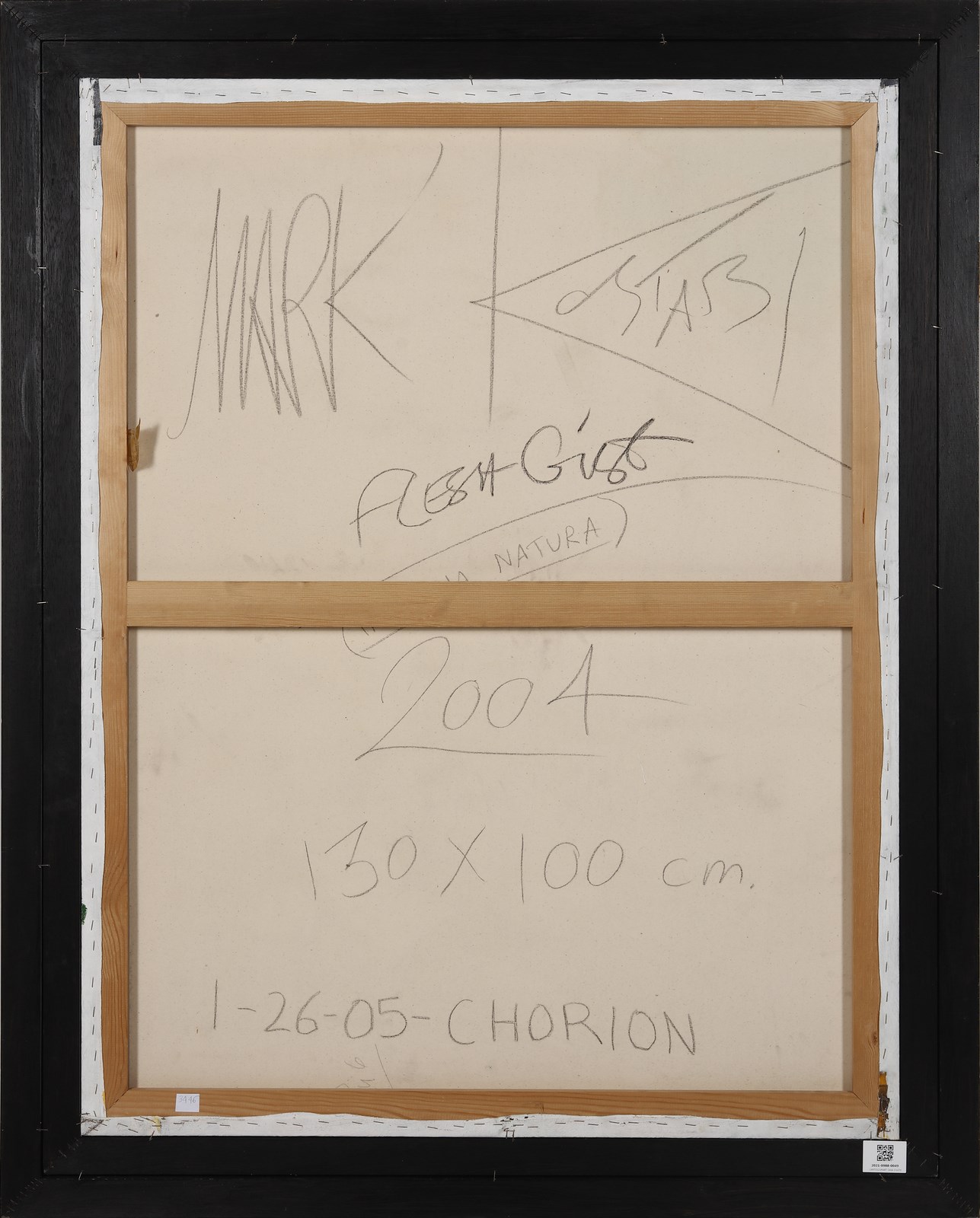 KOSTABI MARK (n. 1960) Flesh gist (Industria natura). 2005. Acrilico su tela. Cm 100,00 x 130,00. Firma e anno in basso a destra. Al retro titolo, firma e anno. Autentica dell'artista su fotografia. Lievi difetti. Cornice presente