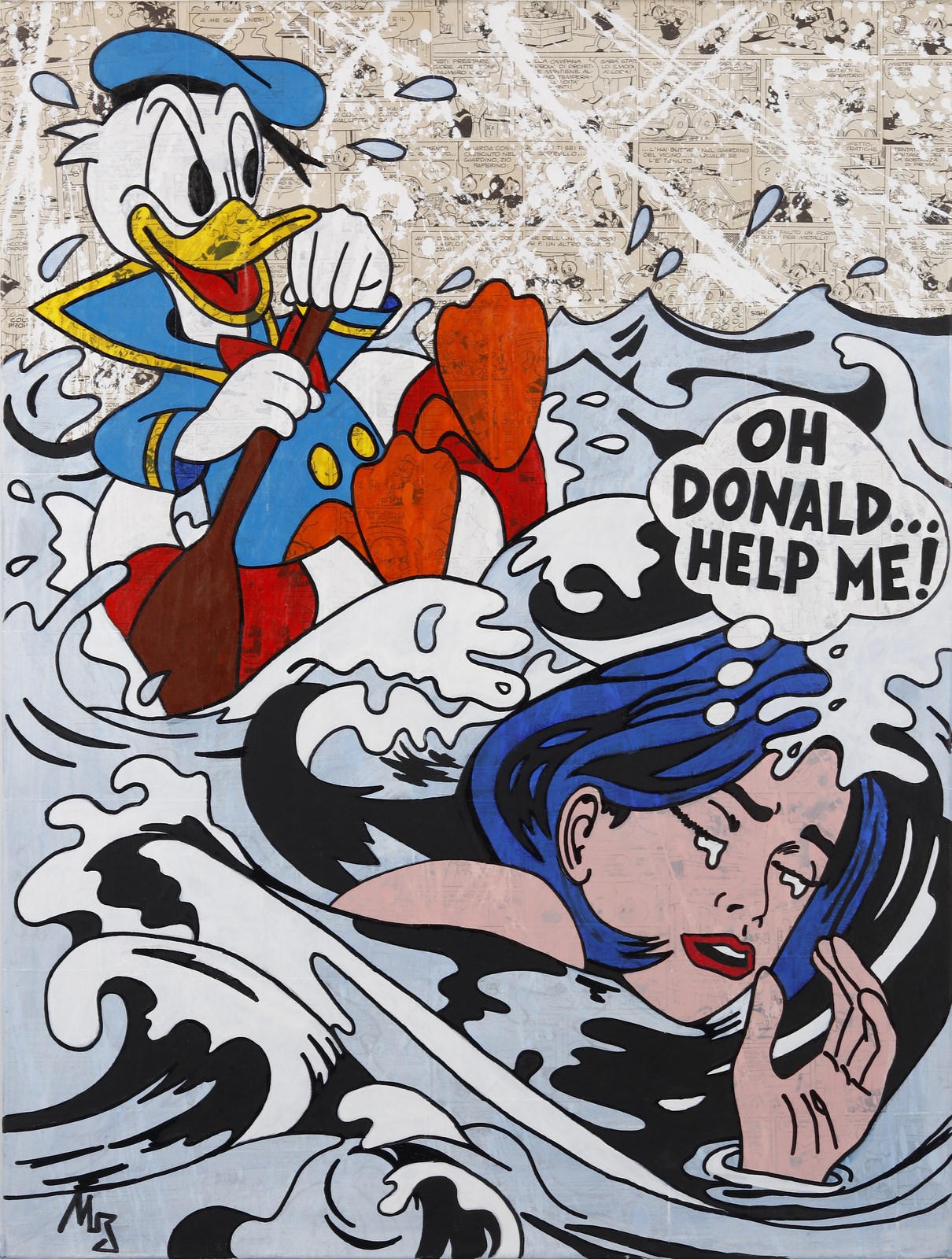 MURA STEFANO (n. 1971) Help me!. 2019. Tecnica mista su tela. Cm 60,00 x 80,00. Al retro titolo, firma e anno.