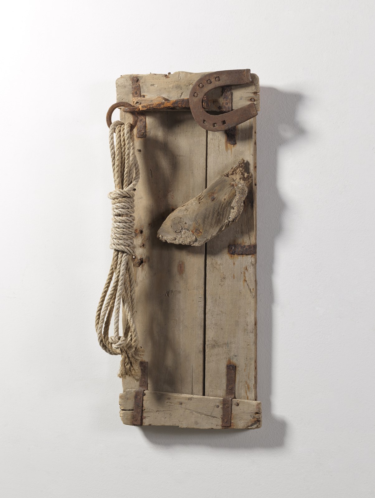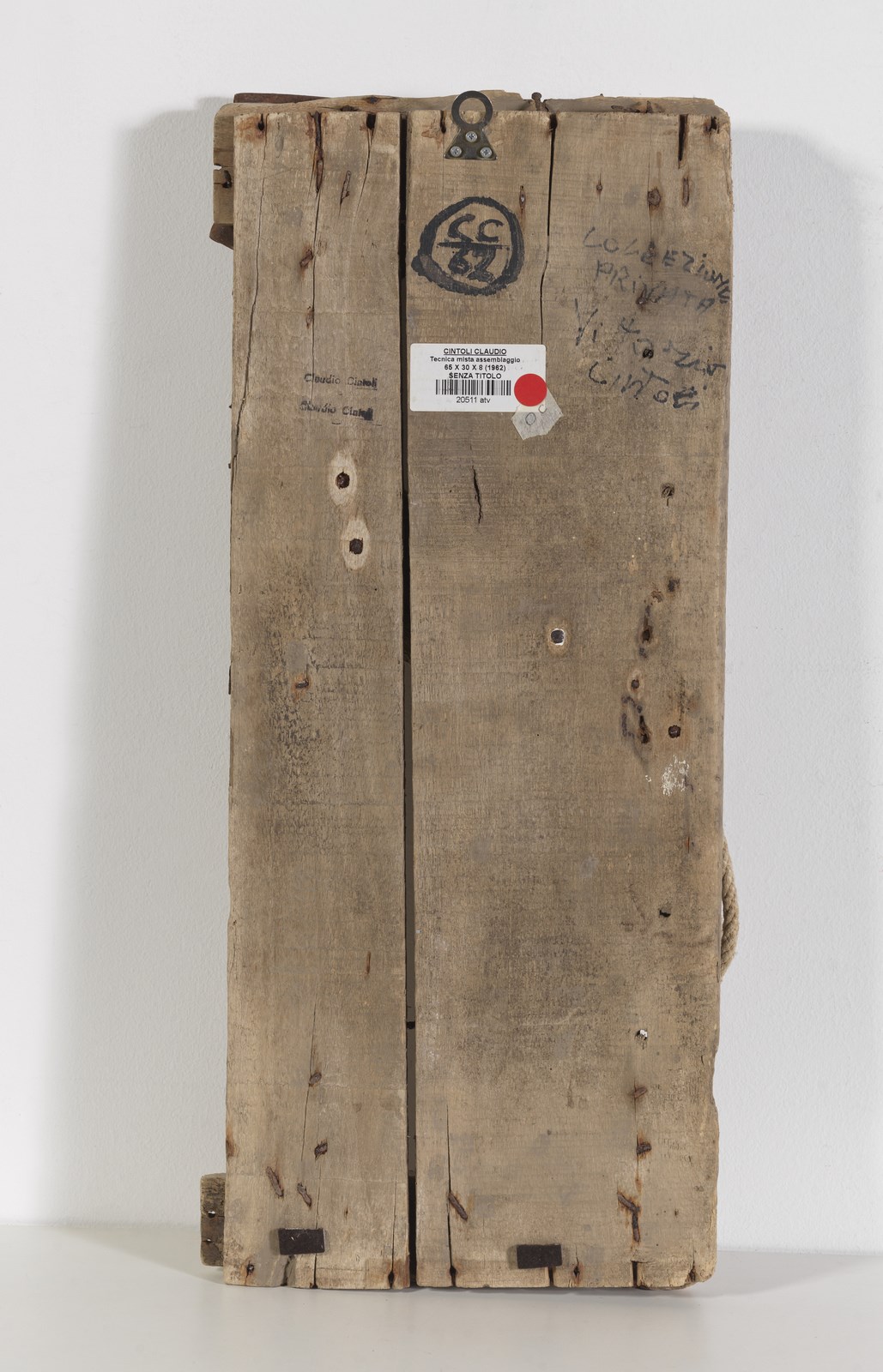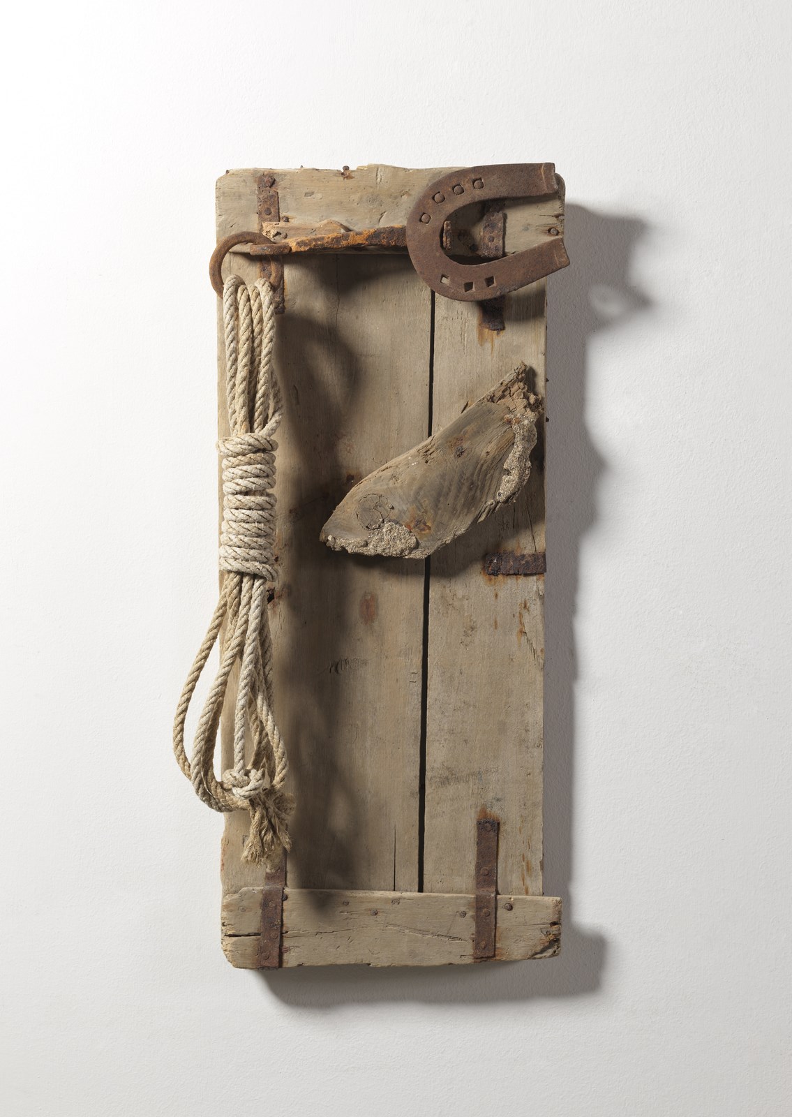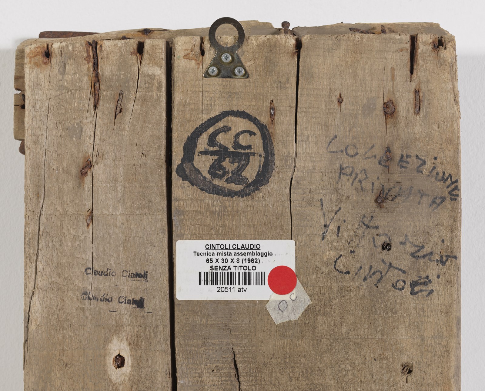 CINTOLI CLAUDIO (1935 - 1978) Senza titolo. 1962. Assemblaggio. Cm 30,00 x 65,00 x 8,00. Al retro firma e anno. Autentica di Vittorio Cintoli su fotografia.