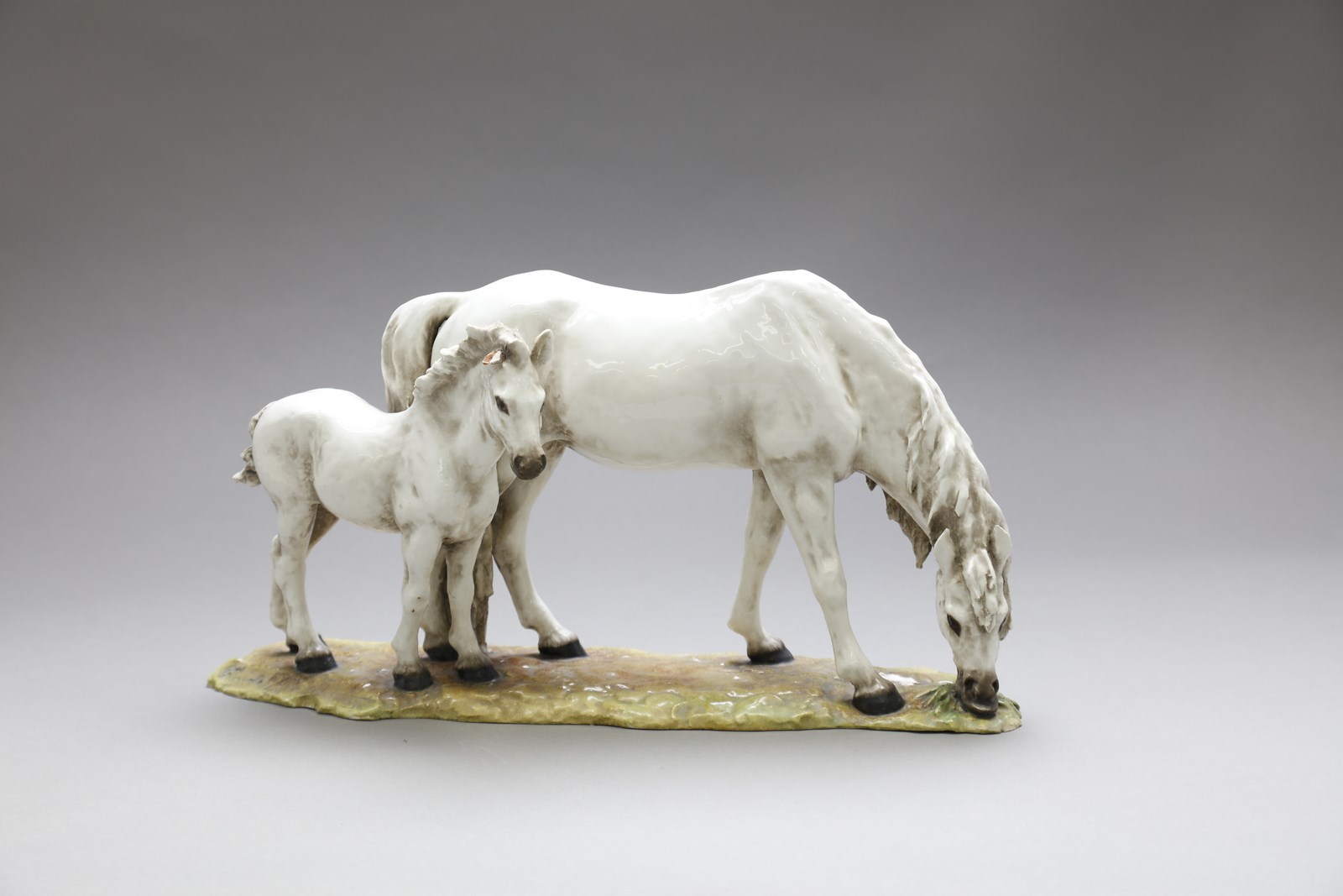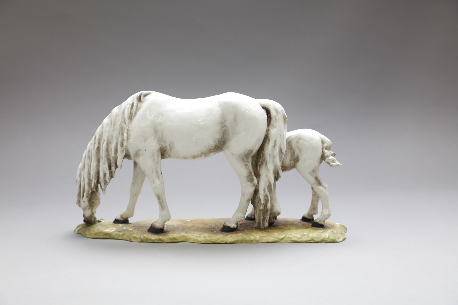CACCIAPUOTI GUIDO (1892 - 1953) Cavalli. Ceramica dipinta. Cm 45,00 x 24,00 x 13,00. Firma incussa, anni Quaranta.