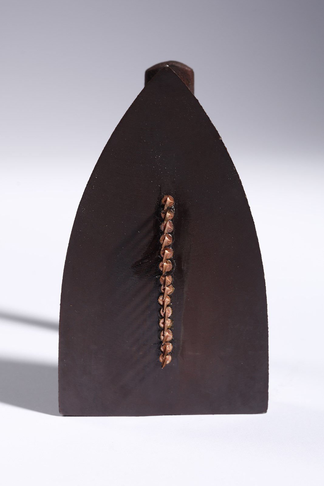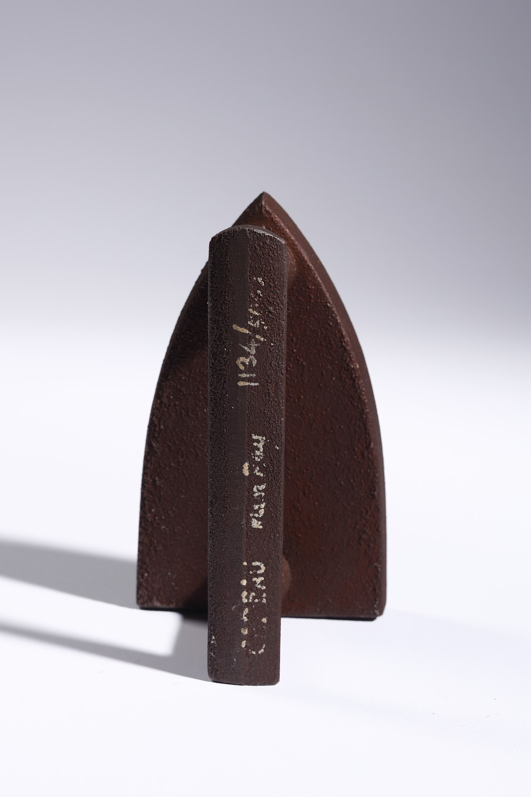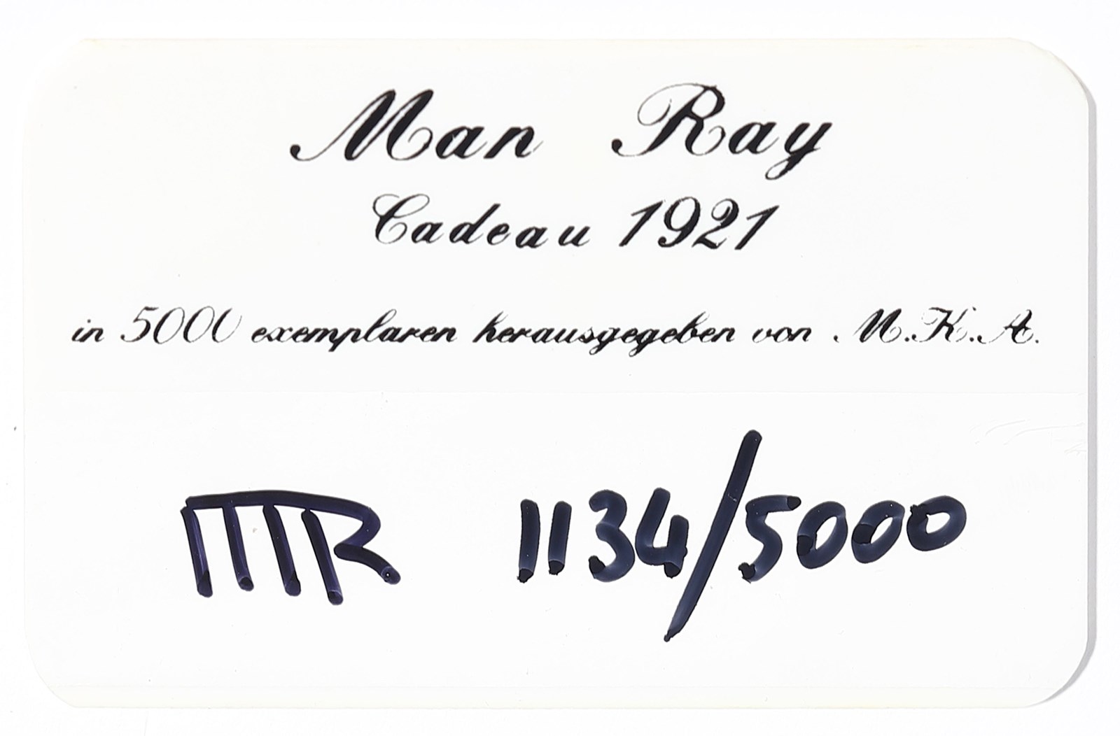 MAN RAY (1890 - 1976) Cadeau. Multiplo. Cm 17,00 x 10,00 x 10,00. 1134/5000. Firma, titolo e tiratura nella parte superiore del manico. Opera contenuta nella sua confezione originale di polistirolo, completa di card di plastica e scheda di Arturo Schwarz con tiratura a biro.