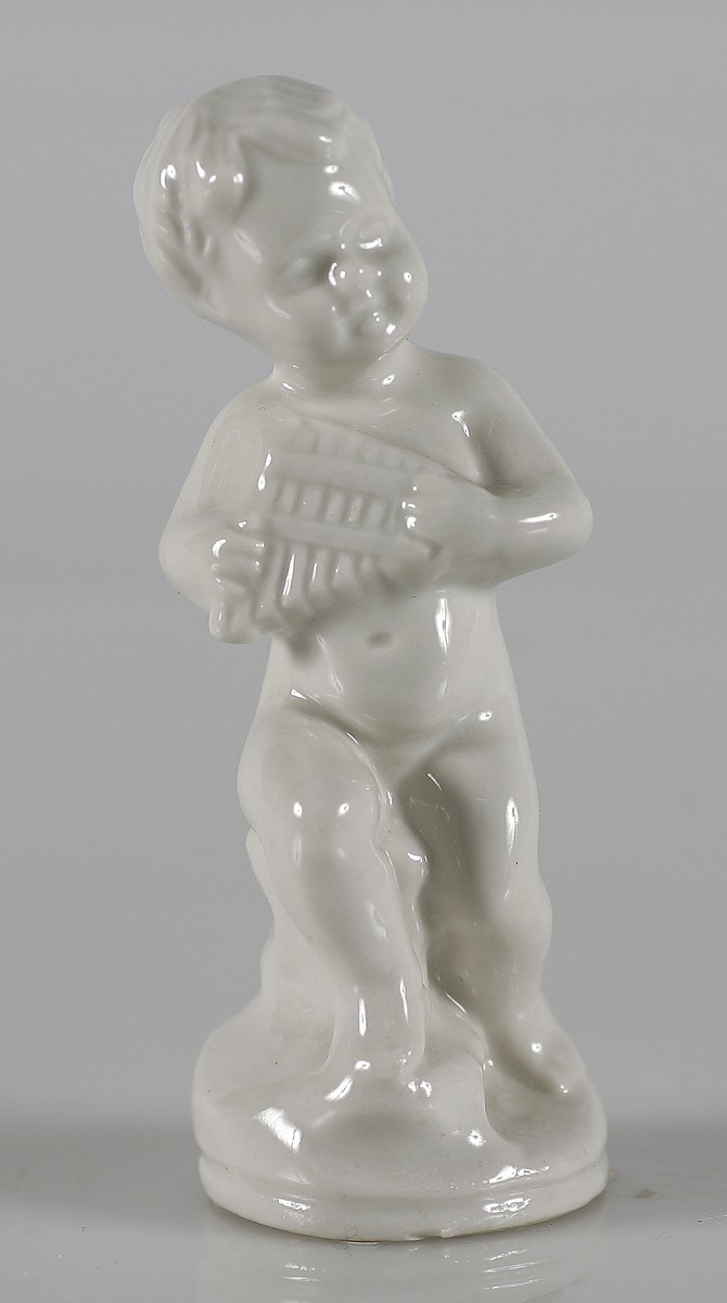 MANIFATTURA DEL XX SECOLO Fanciullo con strumento a fiato. Ceramica. Cm 9,00.