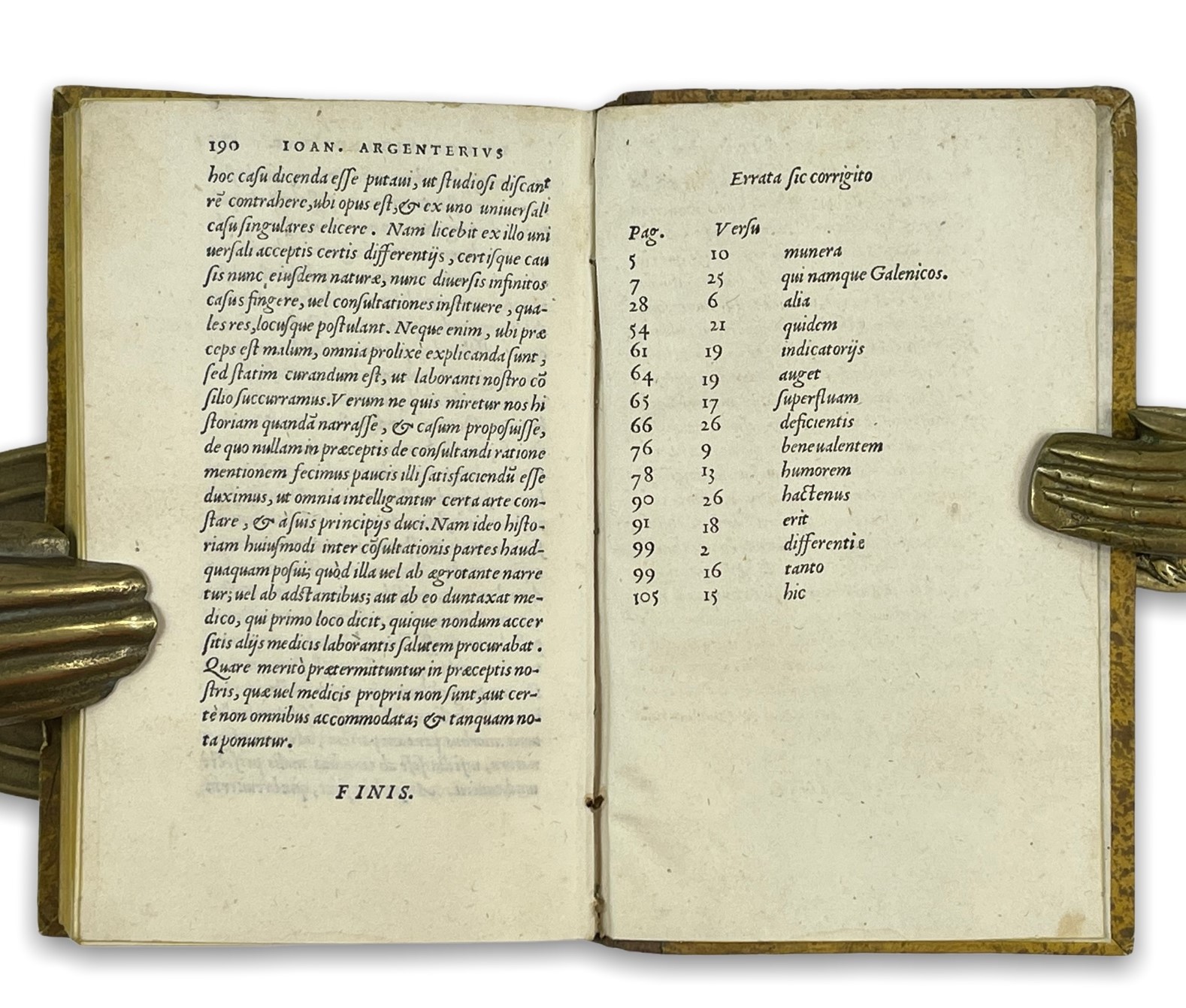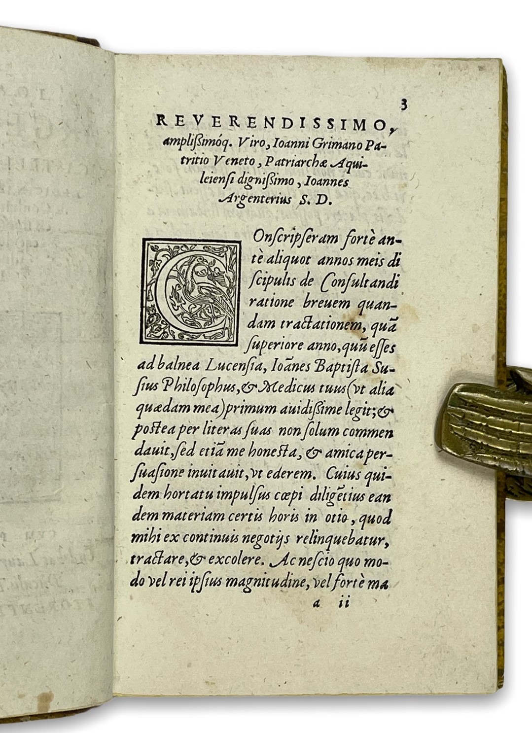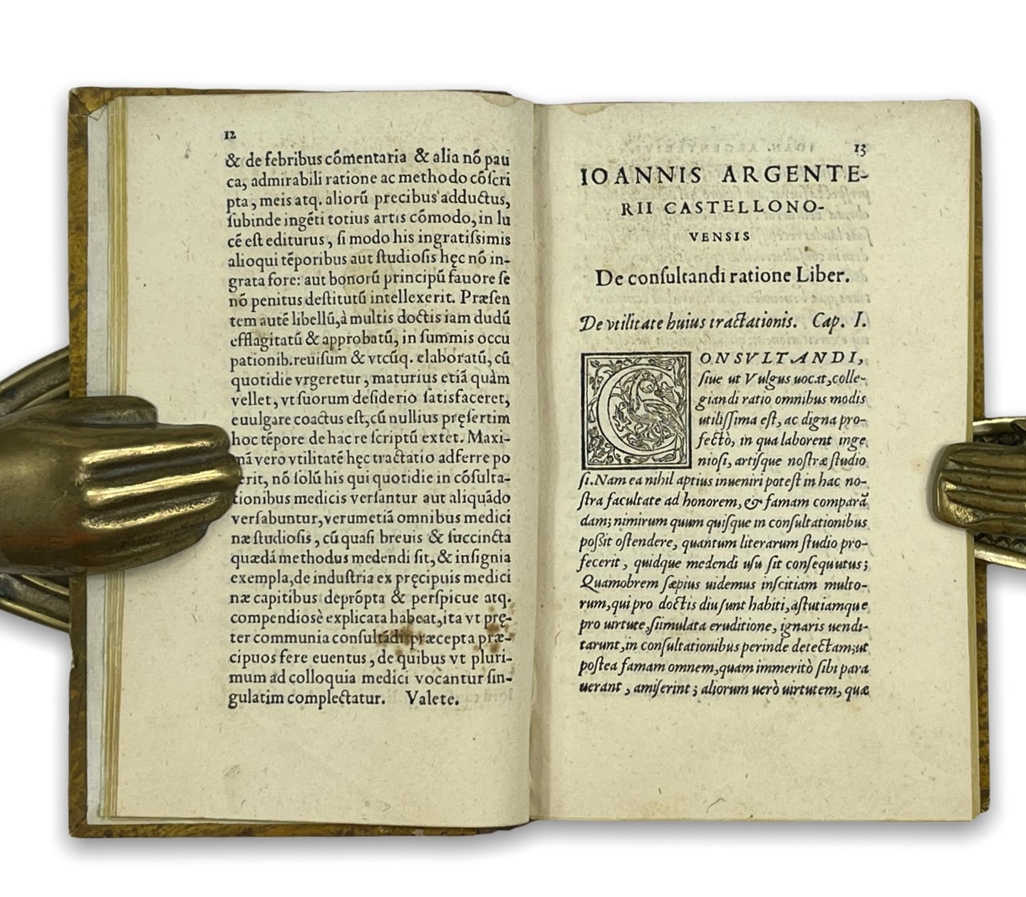 Rare First Edition of Argenterio’s treatise on consultation or collegiality in medicine, where Argenterio dismissed the study of the elements “secundum naturam”, as theorized by Galen.
