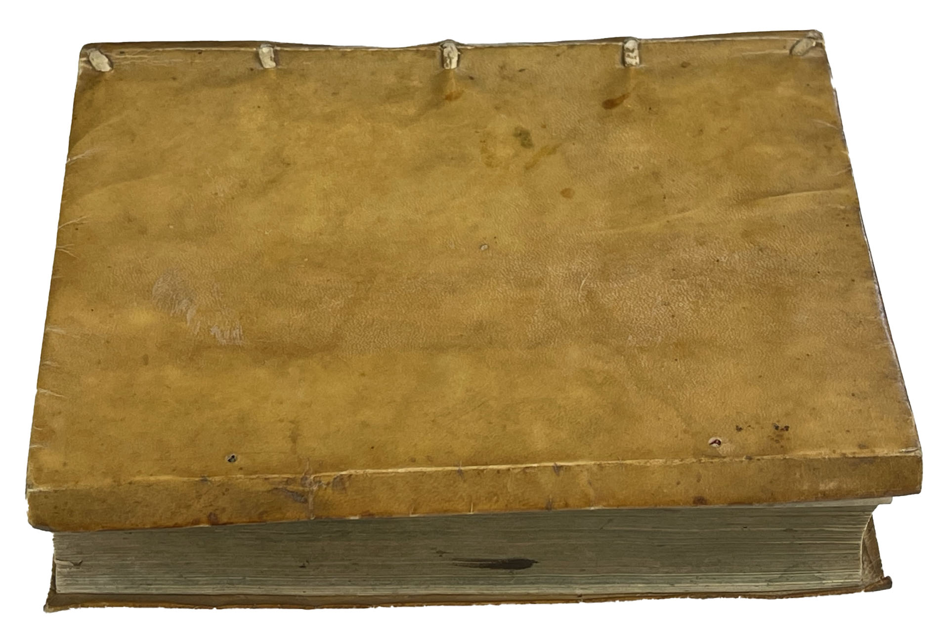 4to, contemporary limp vellum, ff. 395, [1], Signature: A-3C⁸ 3D⁴, Author portrait at title page, with xylographic border.