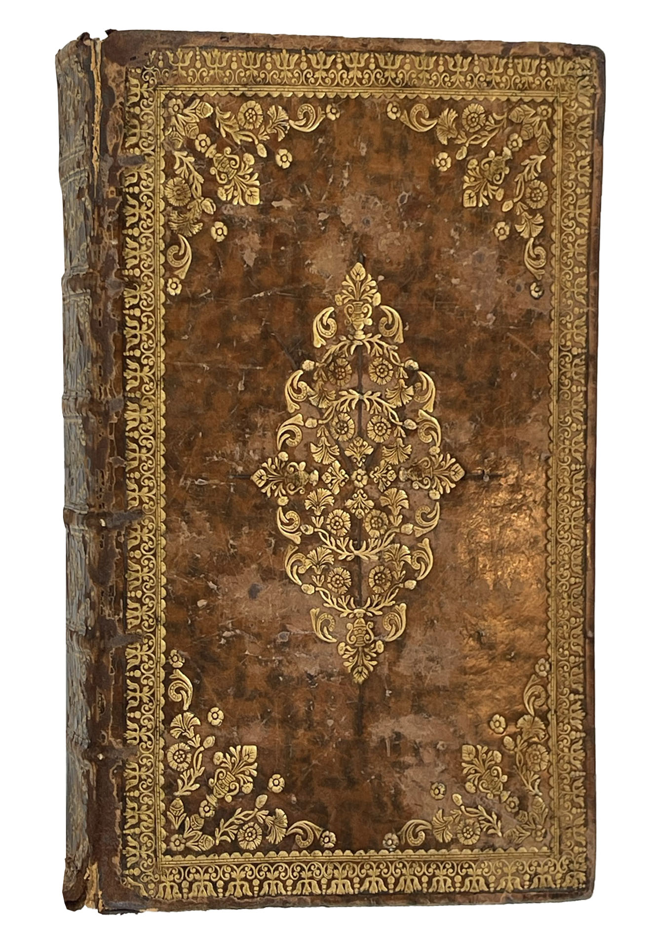 4to, richly decorated full calf contemporary binding, boards with central gilt cartouche inside a ruler with floral decoration at corners, pp. XXXI, 494, inside boards in green paper, full page engravings, engraved headletters.