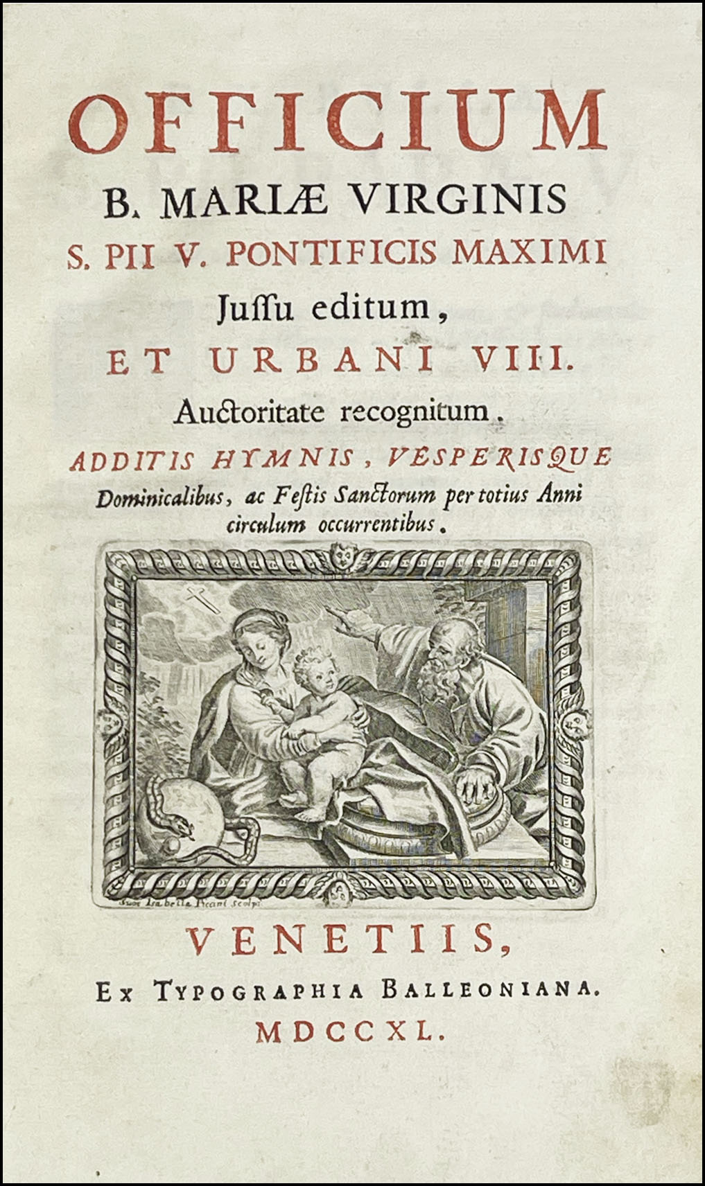 Officium B. Mariae Virginis S. Pii V. Pontificis Maximi jussu editum, et Urbani VIII. Venetiis : Ex typographia Balleoniana, 1740
