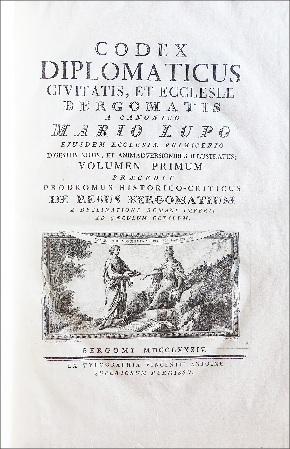 Codex diplomaticus civitatis, et ecclesiae bergomatis canonico Mario Lupo ejusdem ecclesiae primicerio digestus notis, et animadversionibus illustratus; volumen primum [-secundum] .