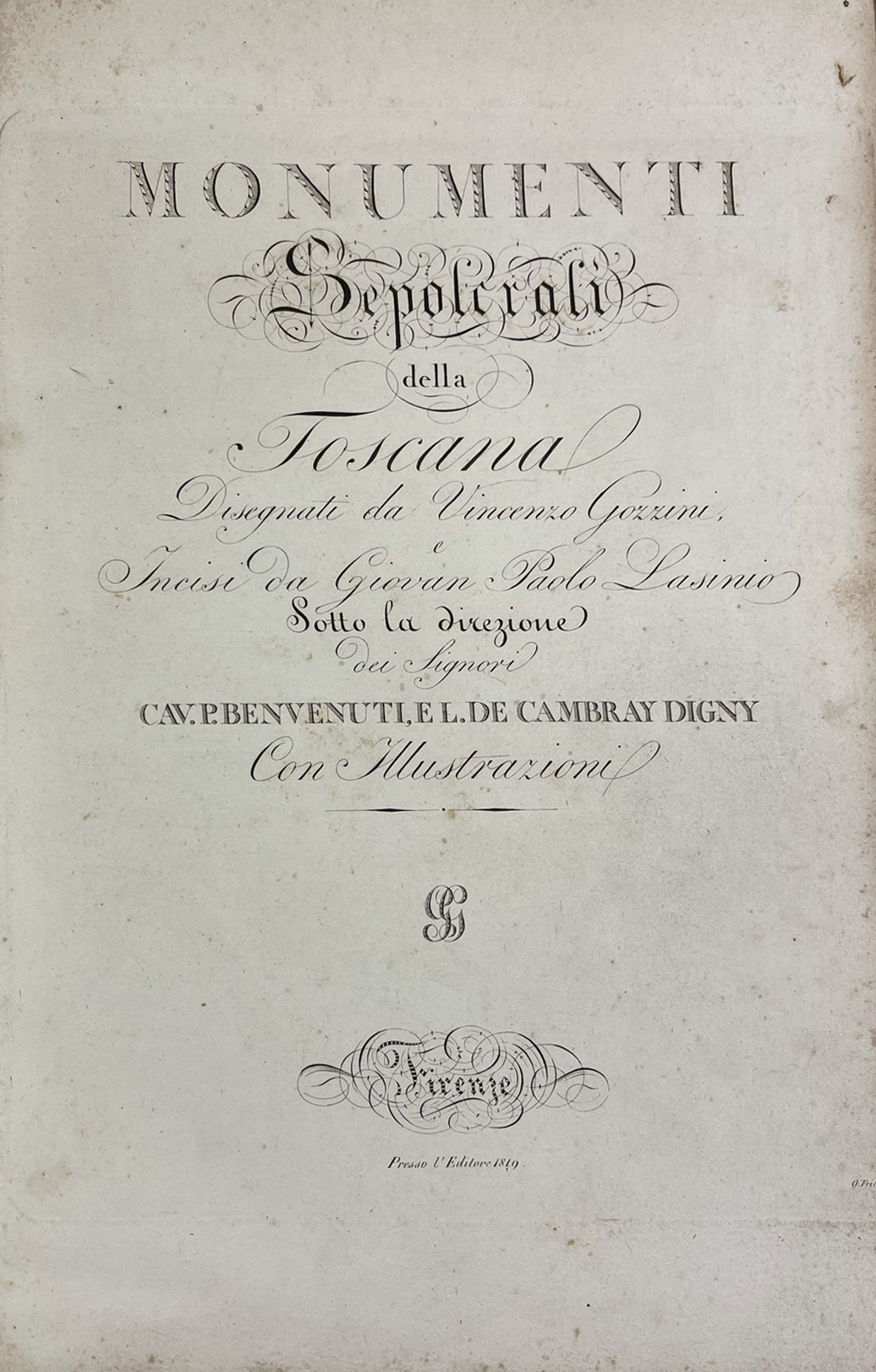 Gozzini, Vincenzo. Monumenti sepolcrali della Toscana disegnati da Vincenzo Gozzini, incisi da Giovan Paolo Lasinio sotto la direzione dei signori cav. P. Benvenuti, e L. De Cambray Digny con illustrazioni . Firenze : presso l'editore, 1819.
