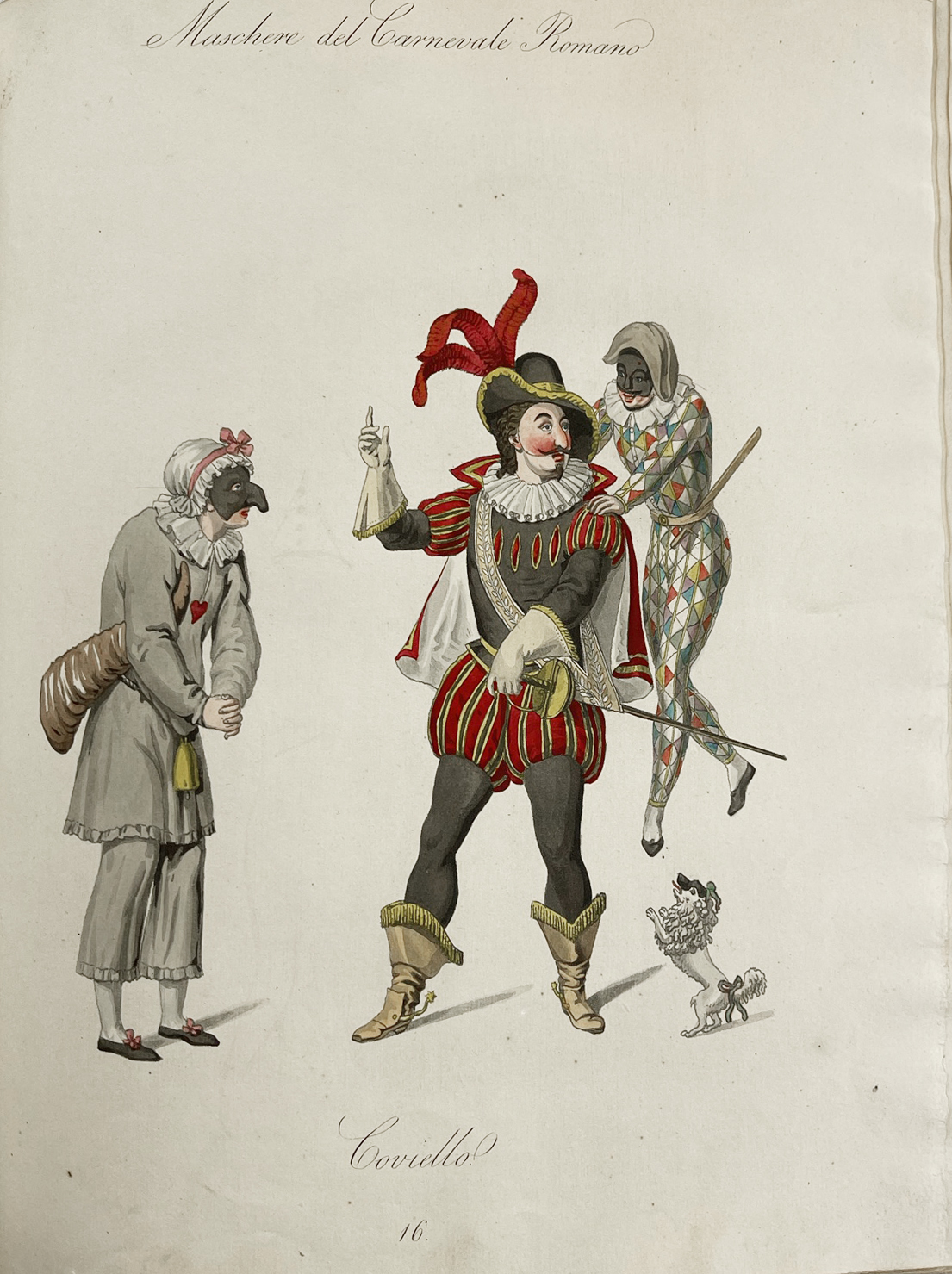 Very rare and beautifully illustrated work about the Commedia dell' Arte and Roman Carnival.
