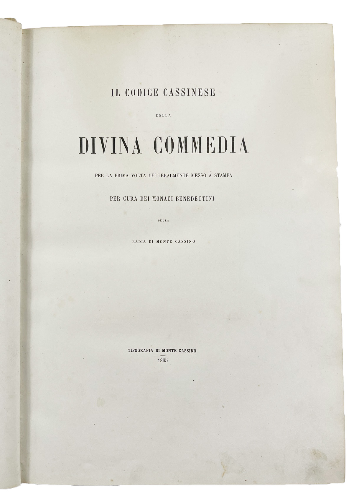 Alighieri Dante, Il Codice Cassinese della Divina Commedia per la prima volta letteralmente messo a stampa per cura dei monaci Benedettini, Monte Cassino: Tipografia di Montecassino, 1865.