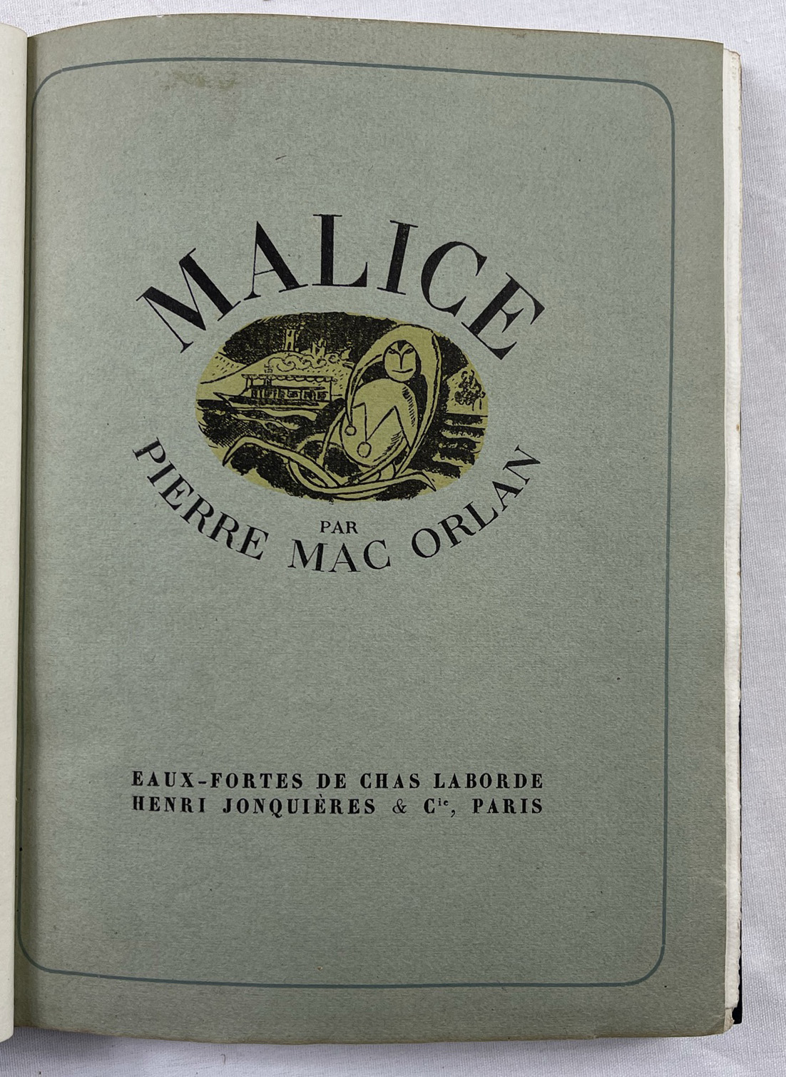 Mac Orlan, Pierre. Malice . Paris : H. Jonquieres & Cie, 1924