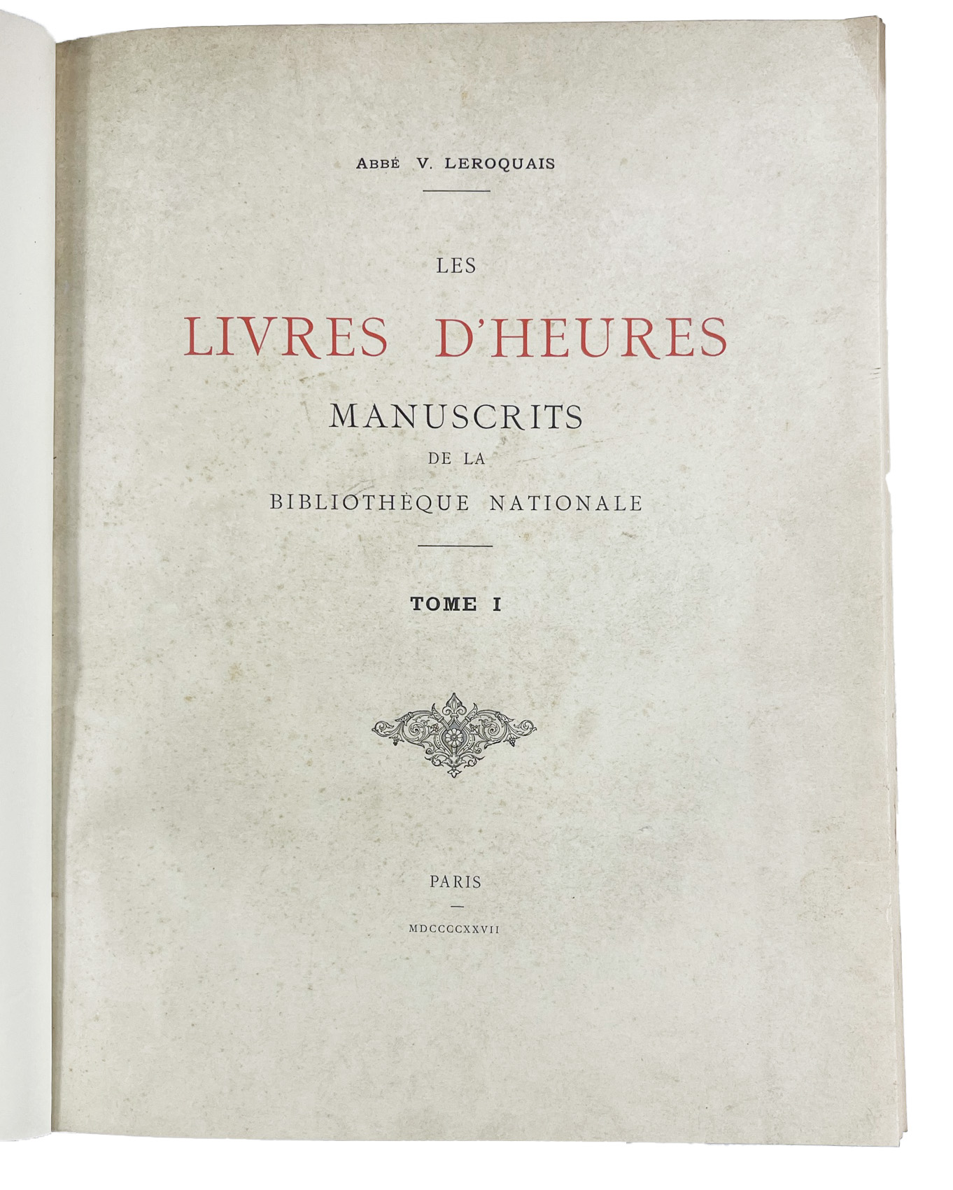 Leroquais (Chanoine V.). Les Livres d'Heures - Manuscrits de la Bibliotheque Nationale. Paris, 1927