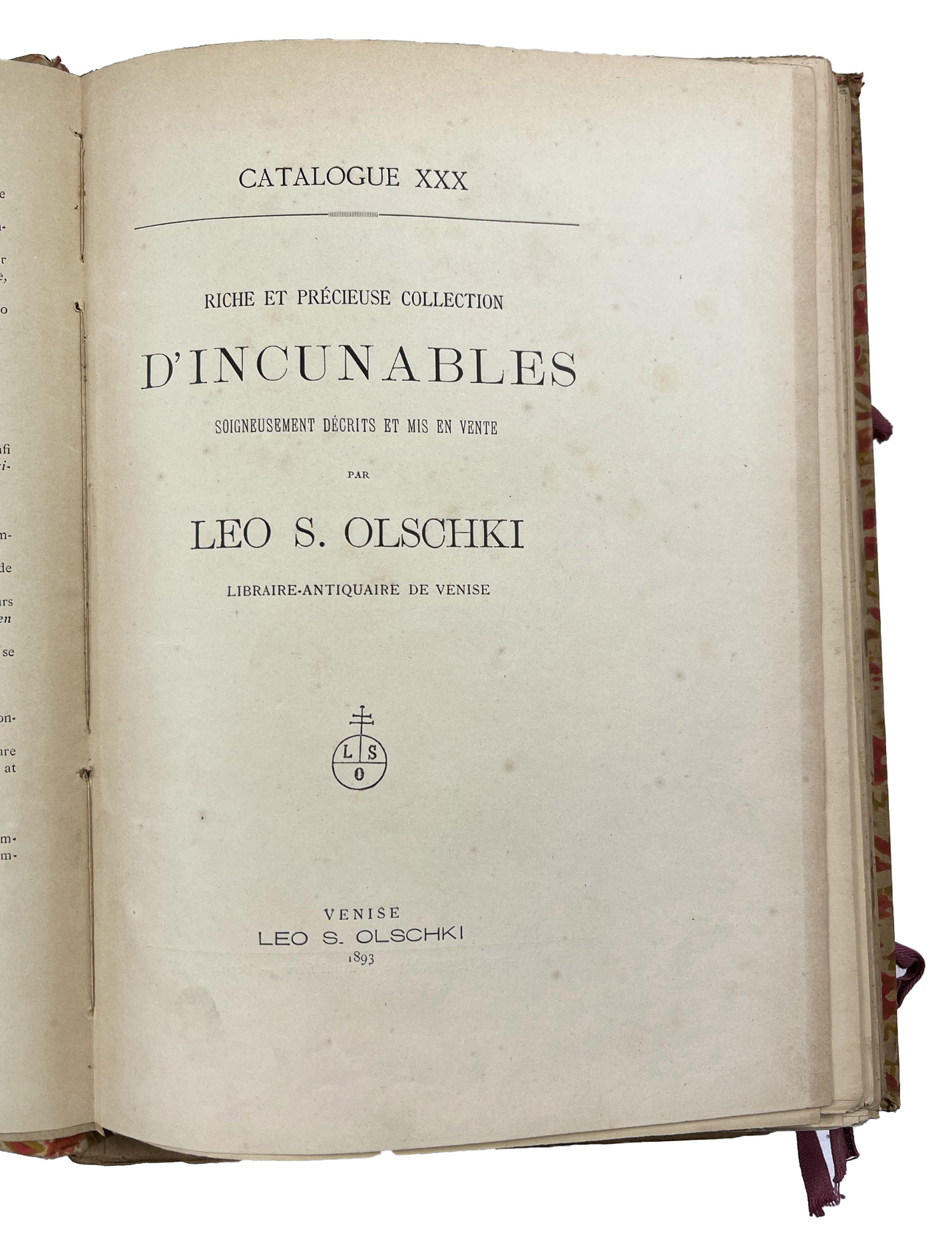 Incunaboli. Catalogo Olschki - Venezia 1893