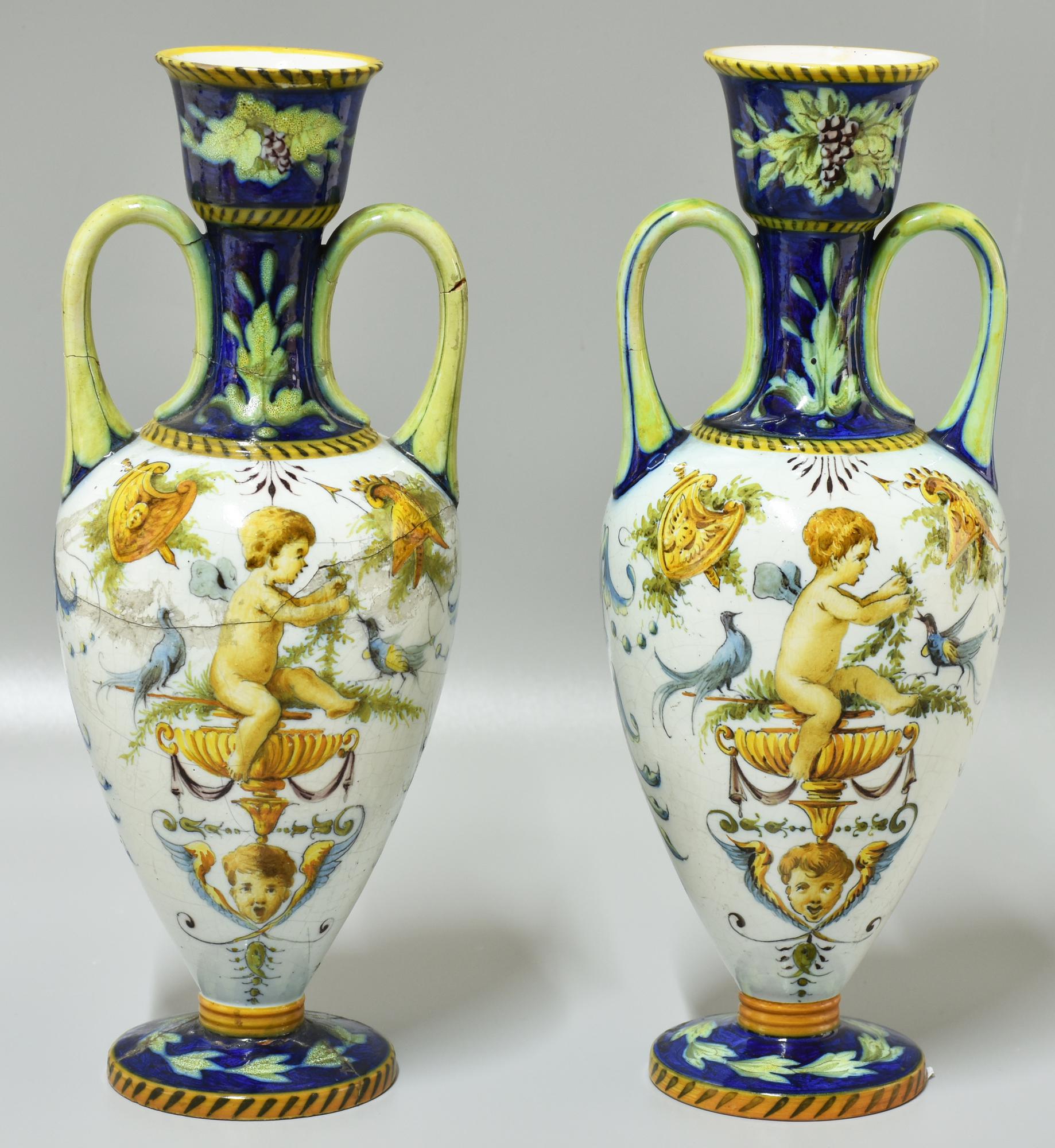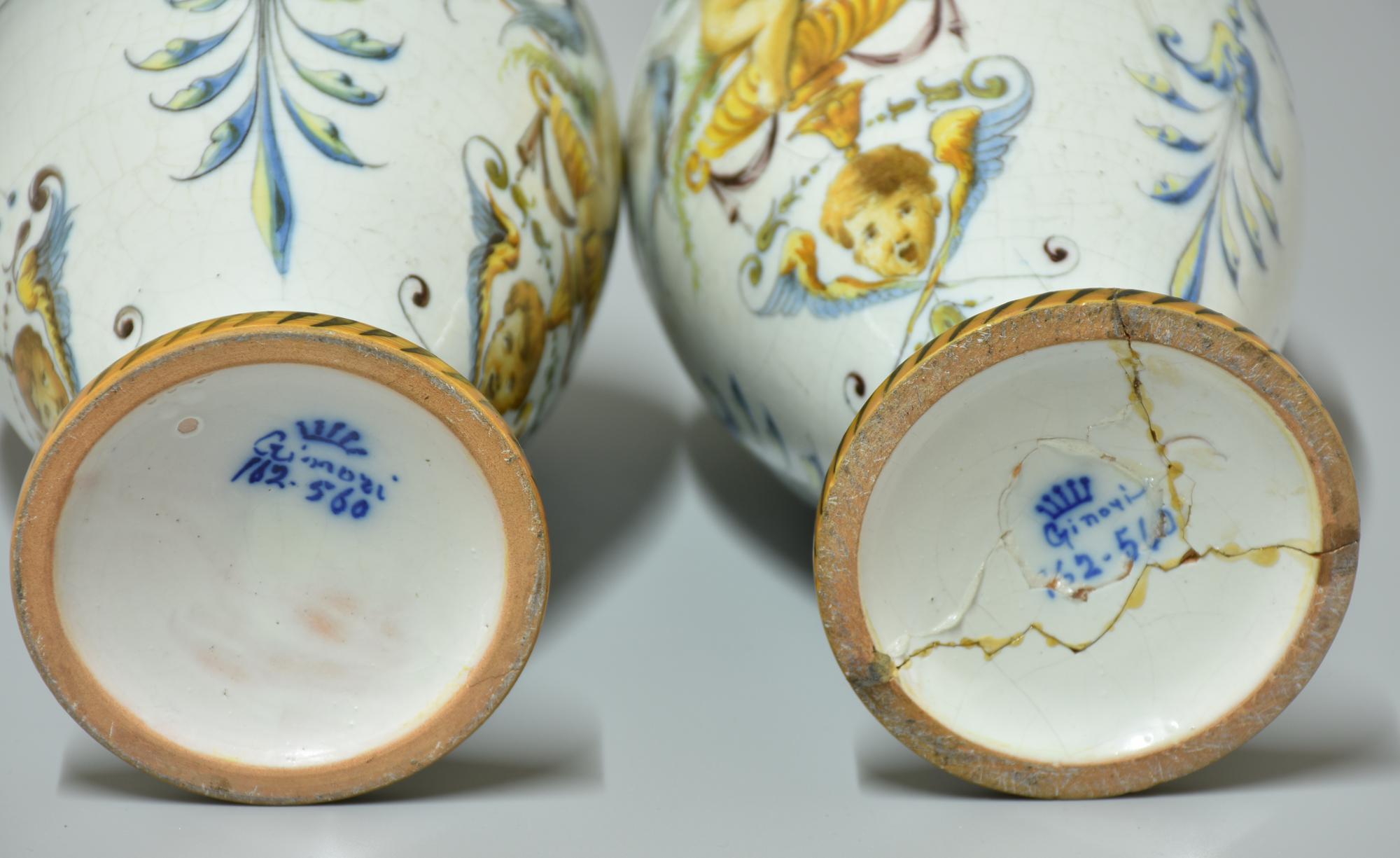 coppia di vasi manifattura Ginori con decorazione a grottesche