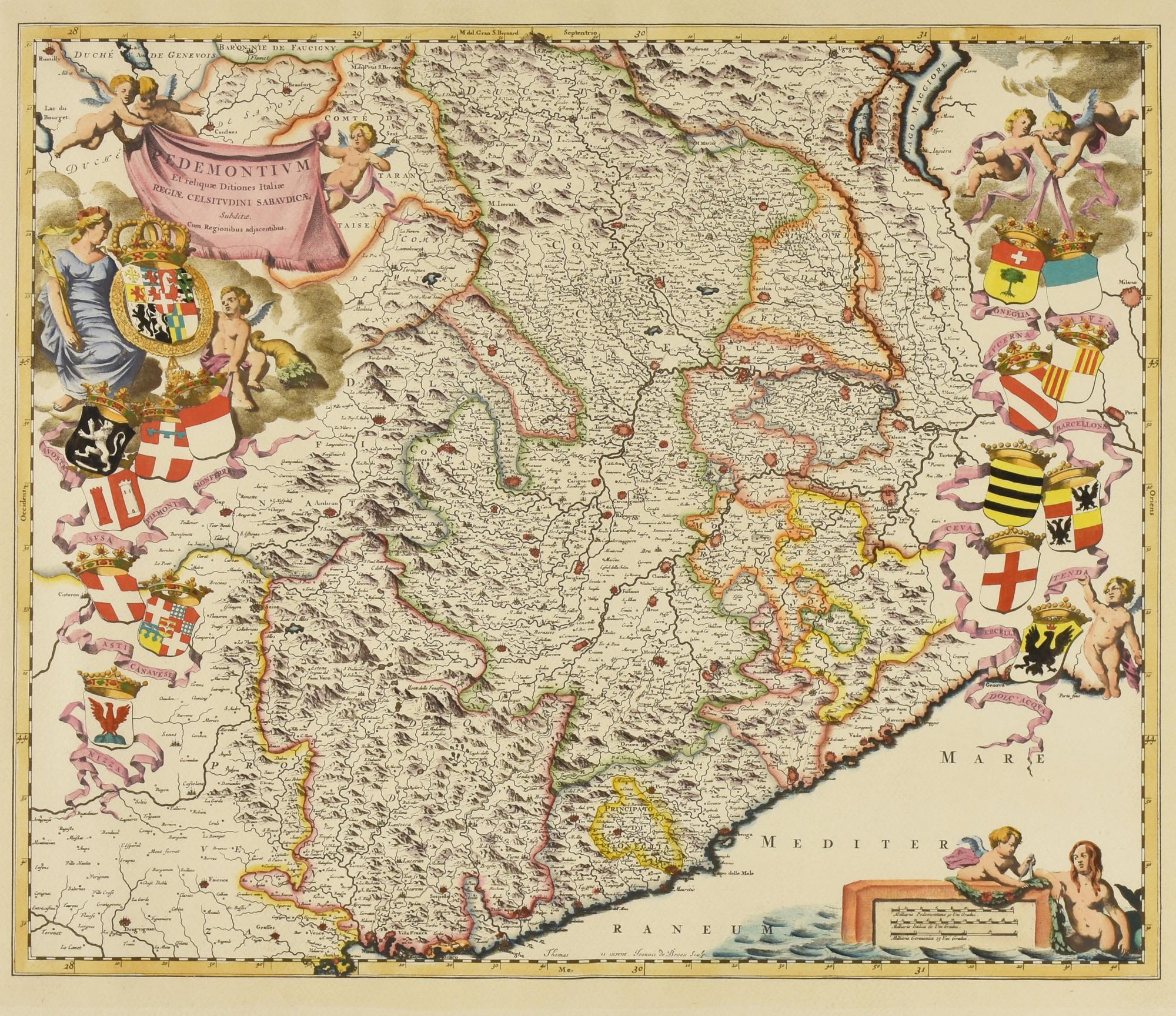 MAPPA DEL PIEMONTE litografia a colori su carta, cm 50x57, es. 1/180 sul...