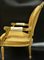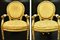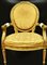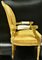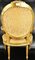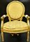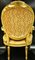 coppia di poltrone in legno scolpito e dorato in stile Luigi XVI con seduta e medaglione rivestite di stoffa damascata