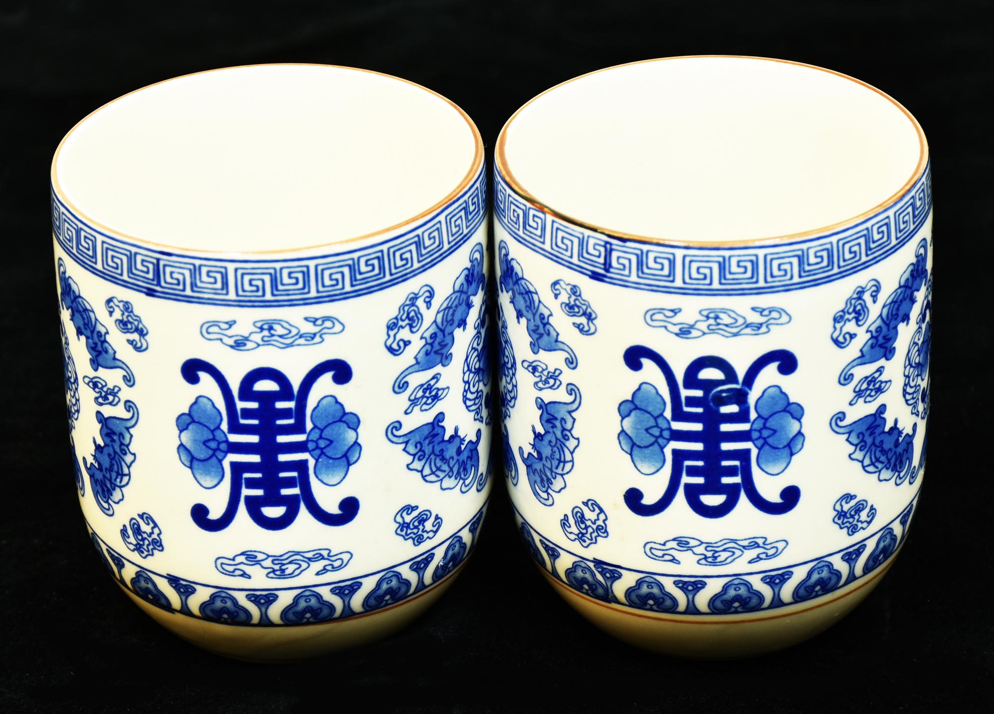 coppia di chicchere in porcellana, finemente decorate nei toni dell'azzurro e del blu cobalto
