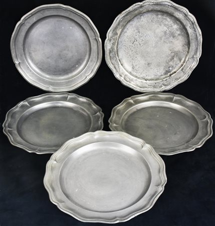 LOTTO DI PIATTI IN PELTRO 5 pezzi, vari punzoni sul retro Francia, seconda...