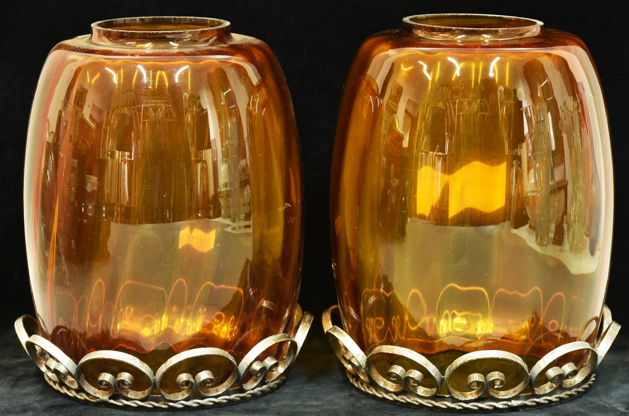 Lot 317 | COPPIA DI LUCERNE coppia di lucerne in vetro giallo arancio con base in ferro...