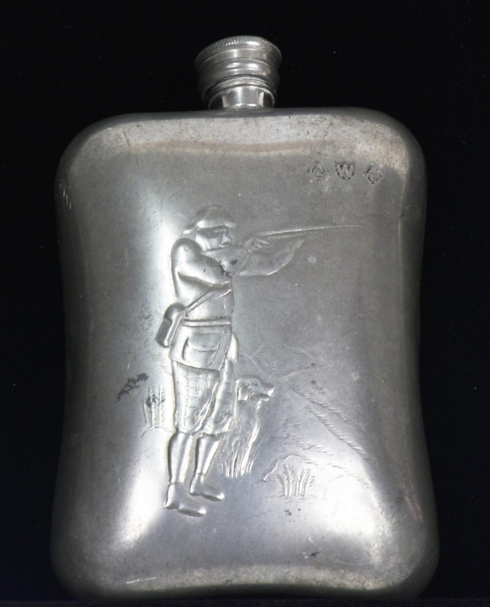 FIASCHETTA PORTA LIQUORE IN PELTRO cm 13x9 cm Inghilterra, inizio XX sec....