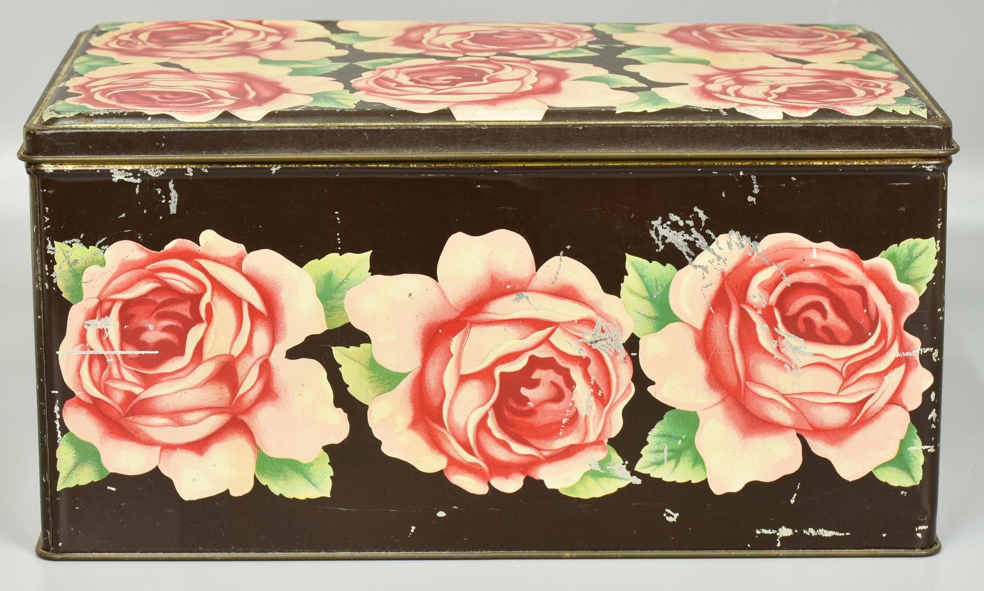SCATOLA IN LATTA scatola in latta litografata con motivi di piccole rose...