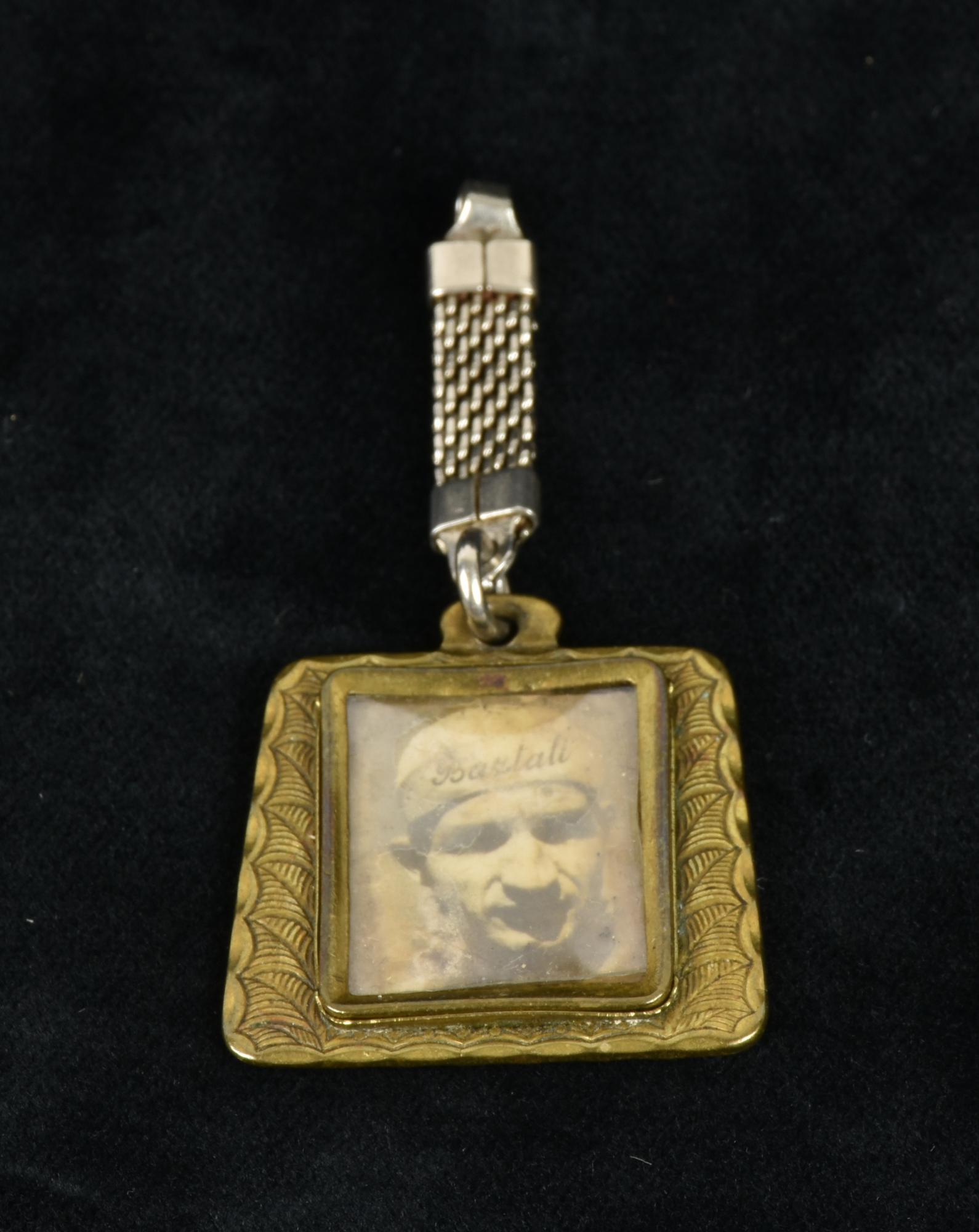 in ottone lucido con portafoto contenente l'immagine di Gino Bartali