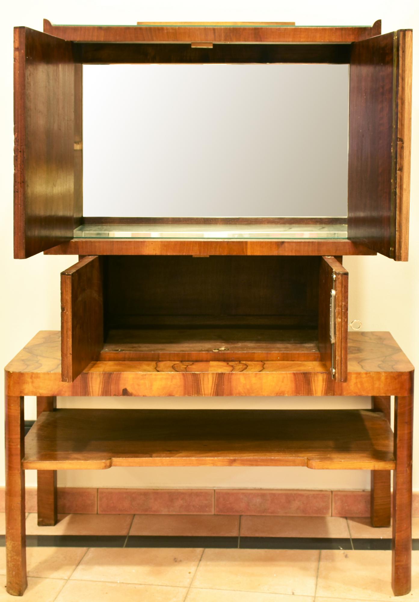 mobile deco finemente lastronato in radica con 4 sportelli, interno con specchi